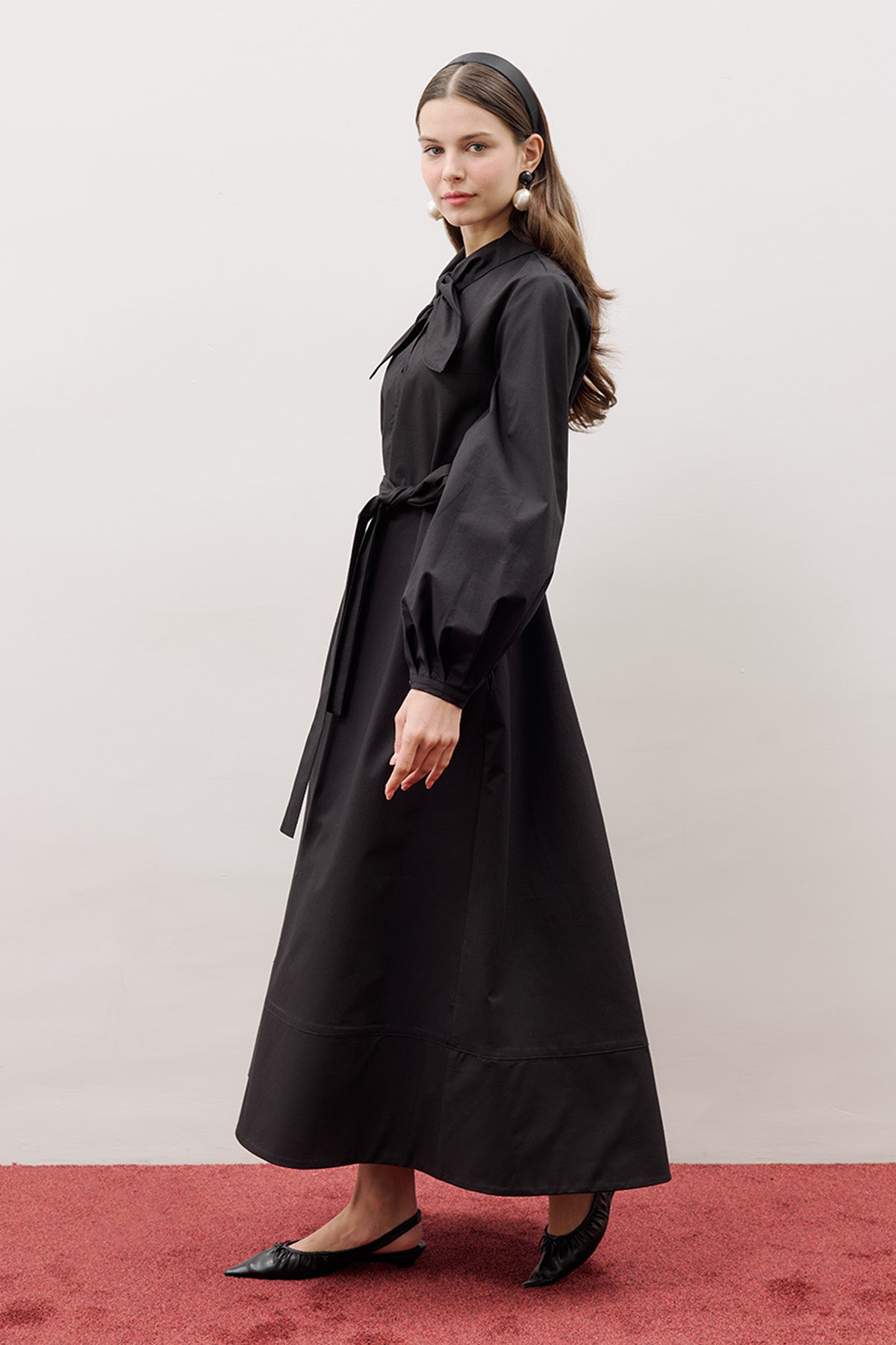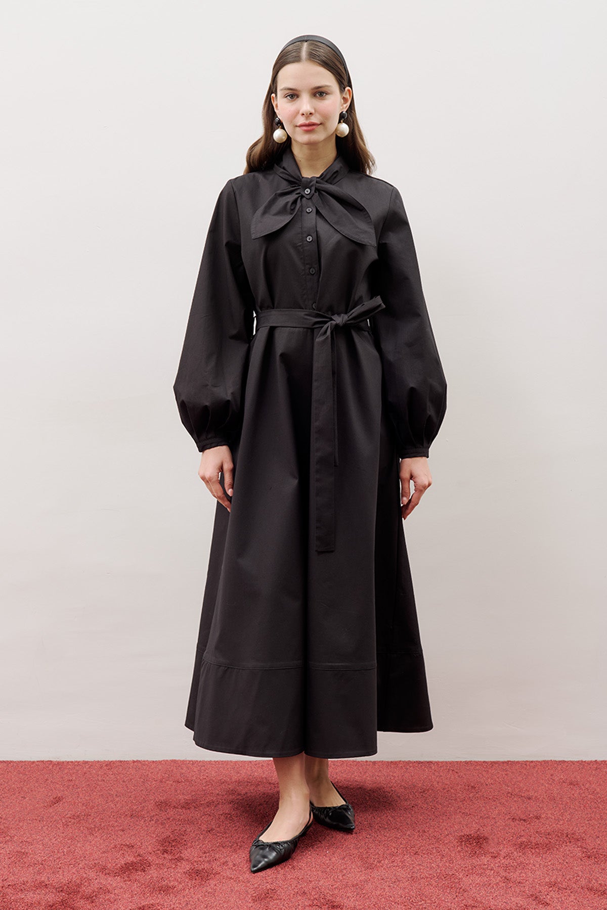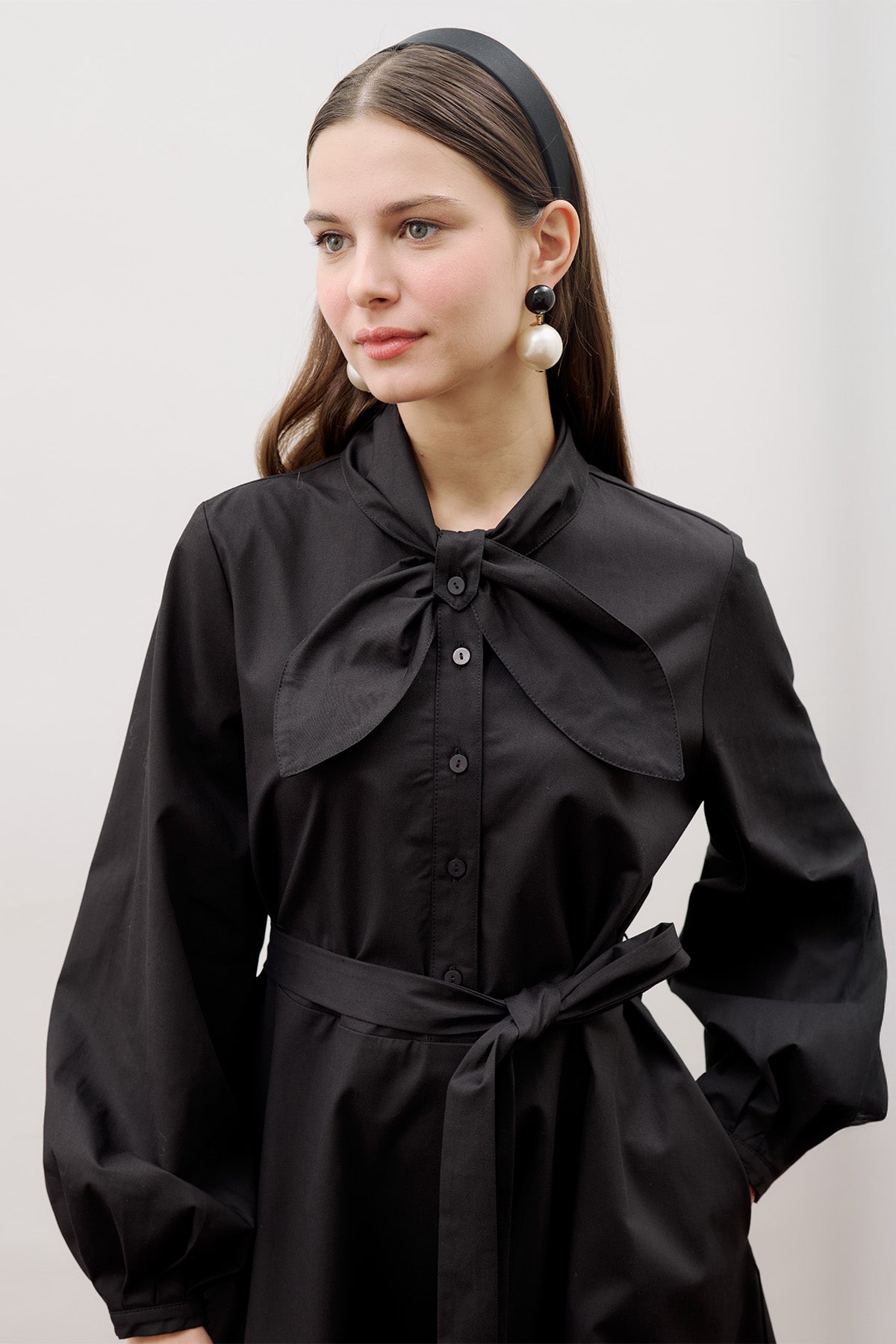 Bağlamalı yaka, uzun kol,kuşaklı,bağlamalı,düğmeli, normal kalıp.