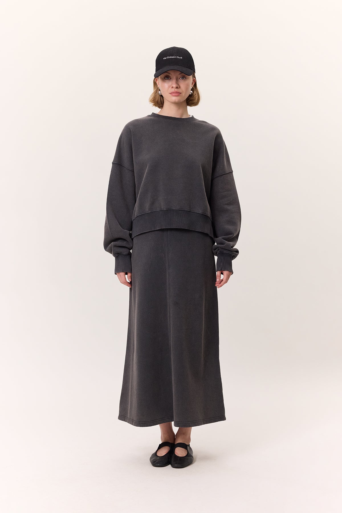 Washed Effect Flared Skirt Anthracite