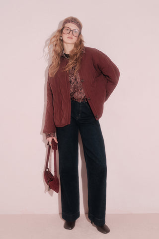 Due to the nature of denim, color may fade with wear and washing. It may transfer onto lighter fabrics and surfaces. Wash inside out with similar colors and avoid storing damp.