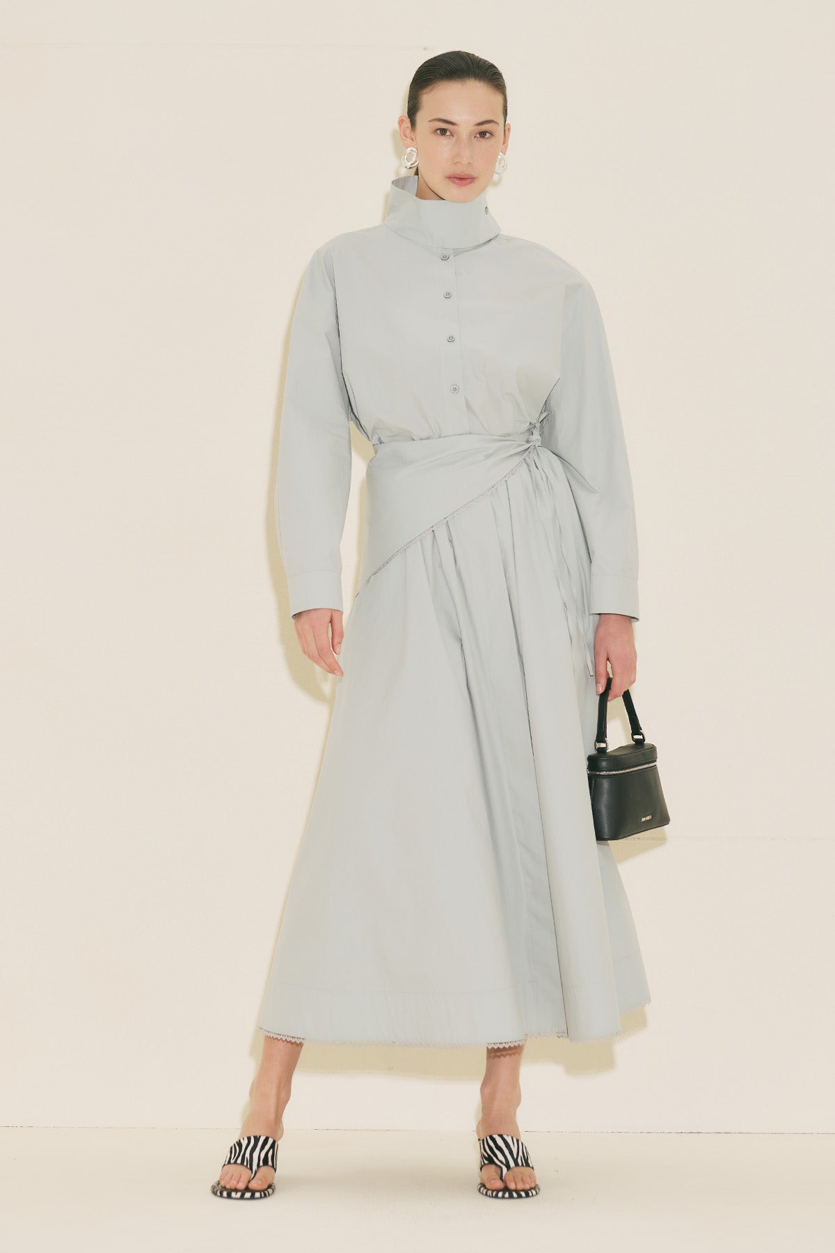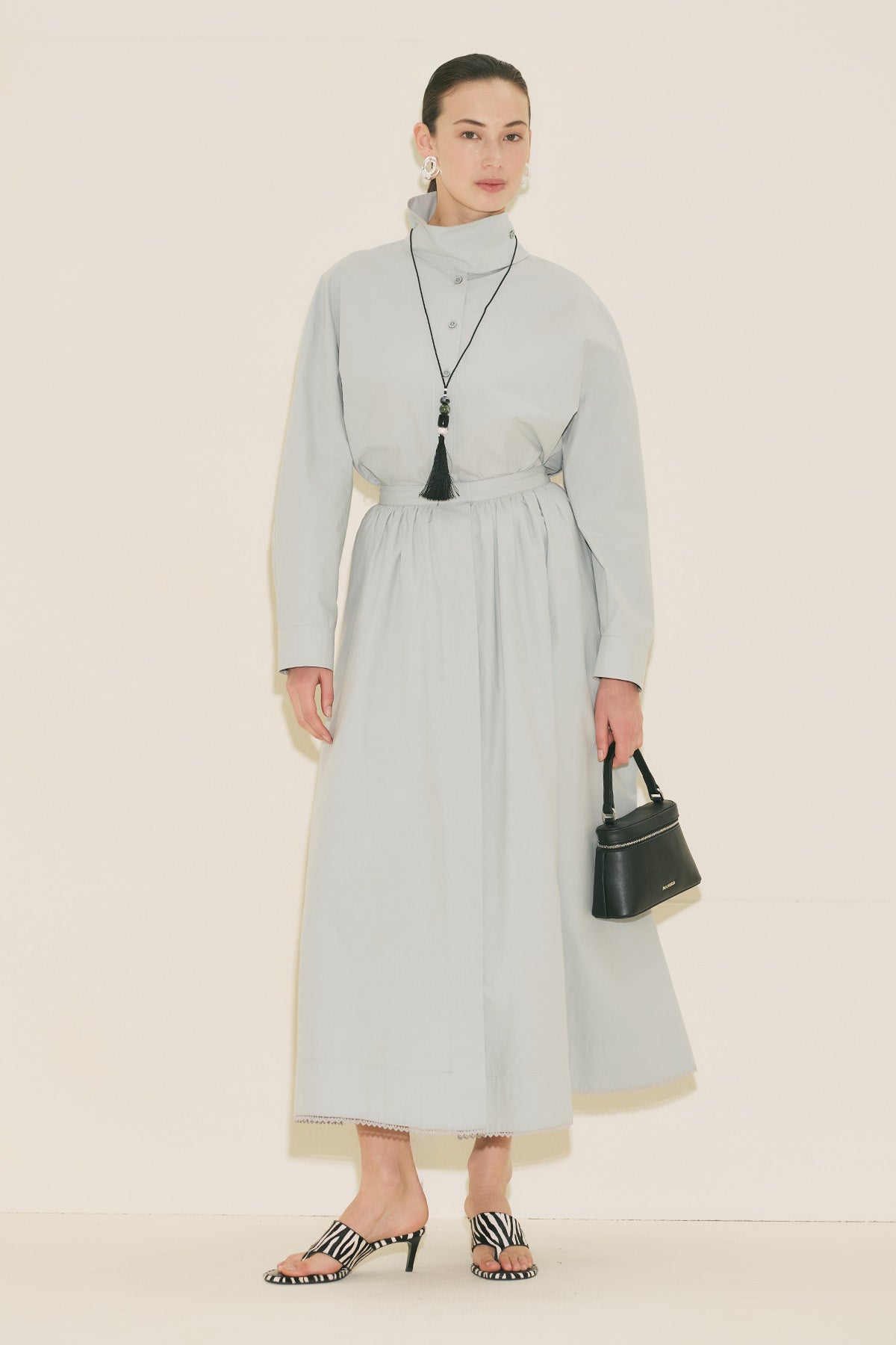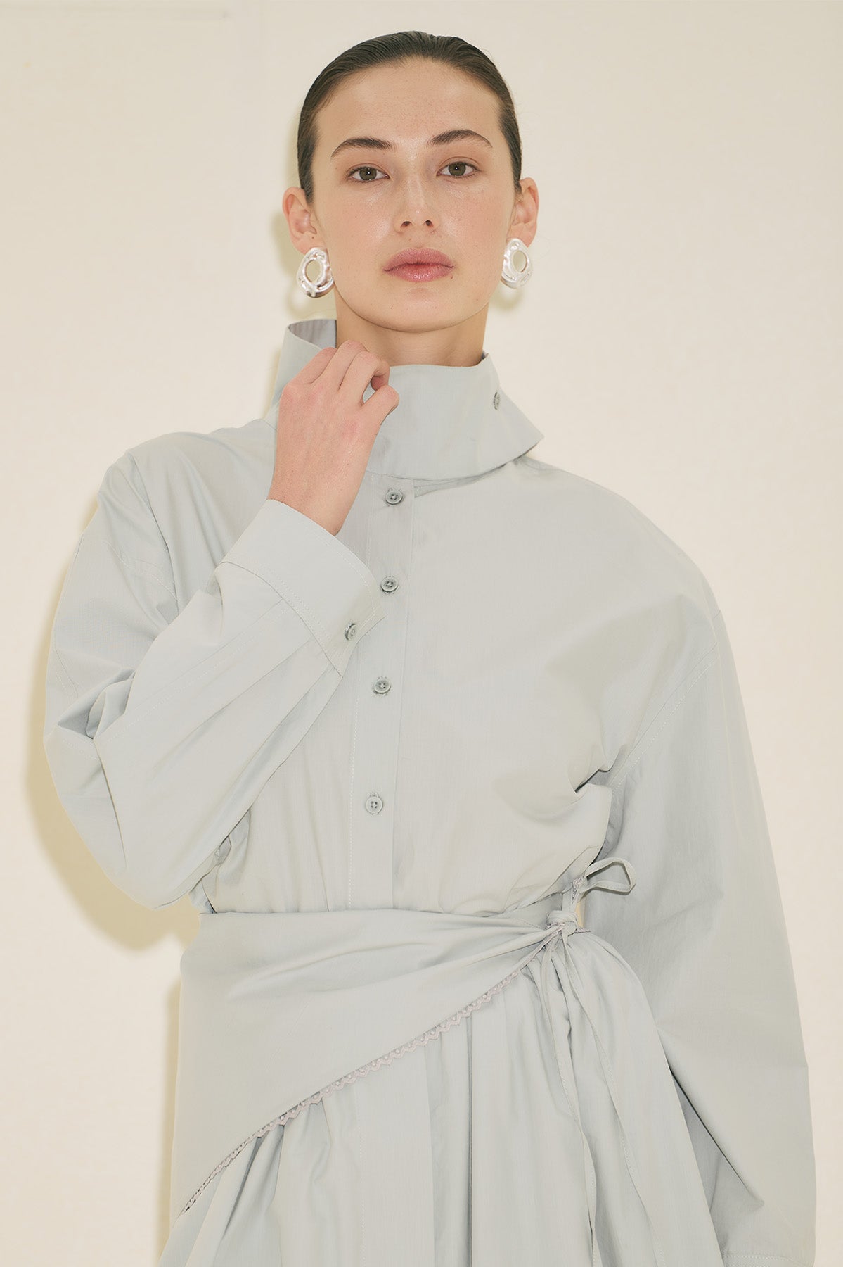 High Neck Cropped Shirt Blue