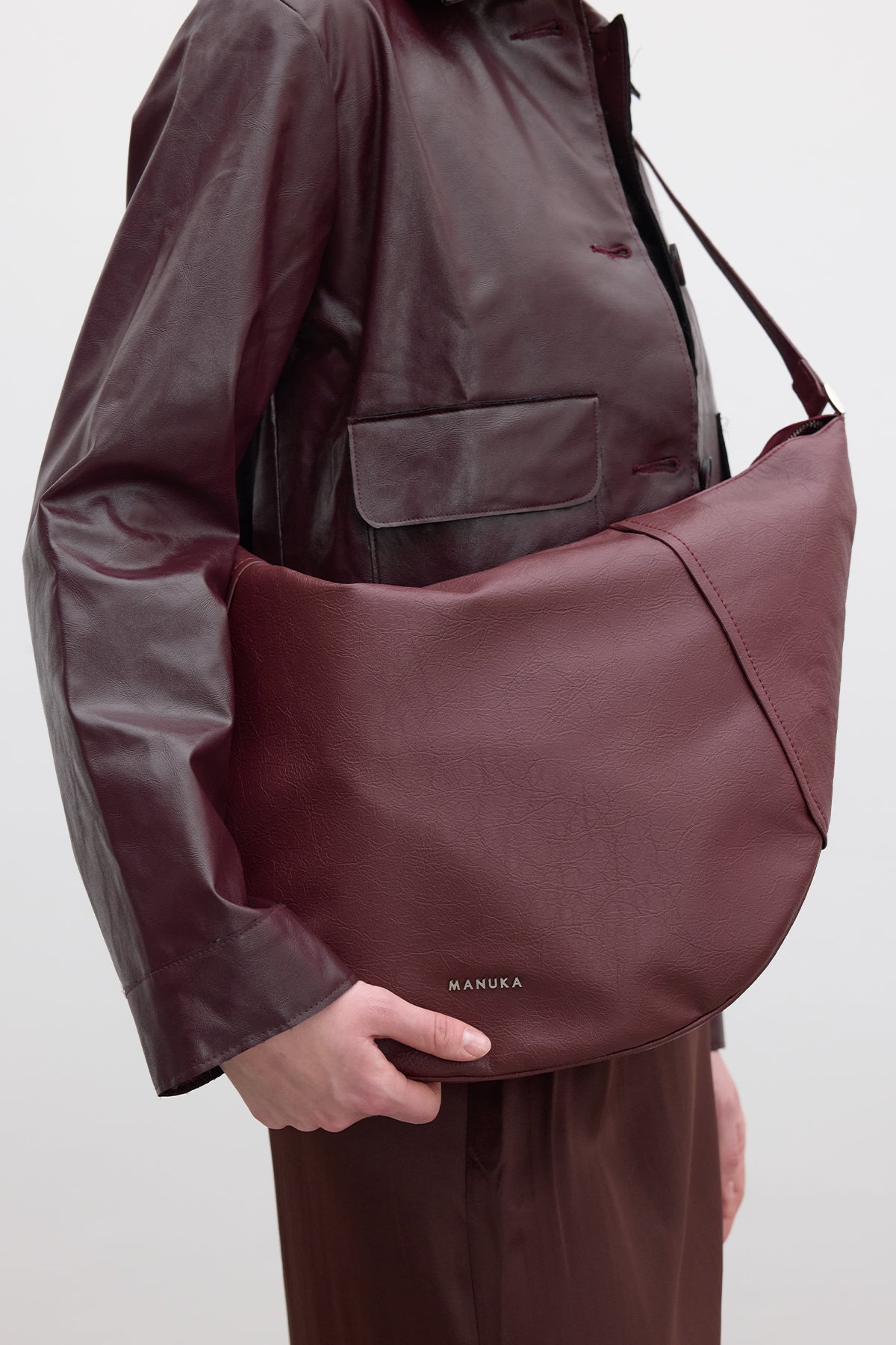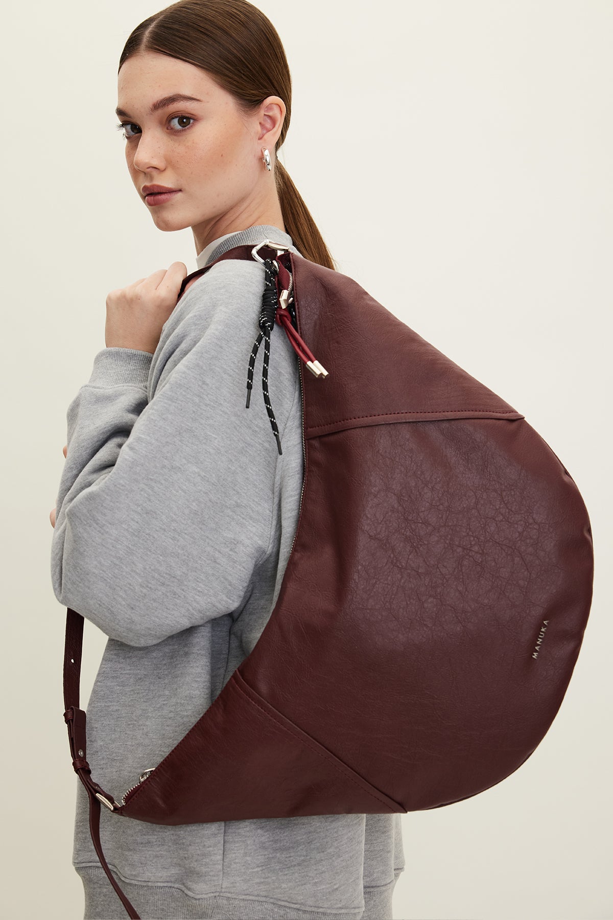 Soft Faux Leather Oval Crossbody Bag Burgundy