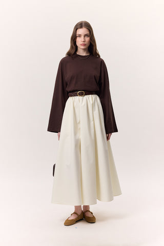 Çizgili Büyük Boy Uzun Kollu Tişört Kahverengi