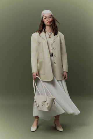 Kapitoneli Kemerli Kısa Ceket Vanilya
