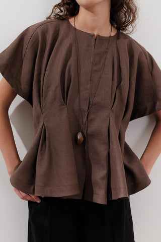 Pileli Keten Yelek Tozlu Kahverengi