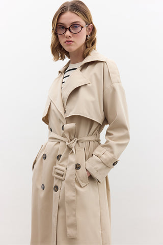 Stockholm Eşarp Detaylı Oversize Trençkot Kahve