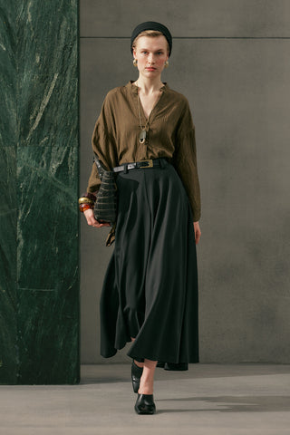 Fluid Tencel Pleated Trousers Dark Brown