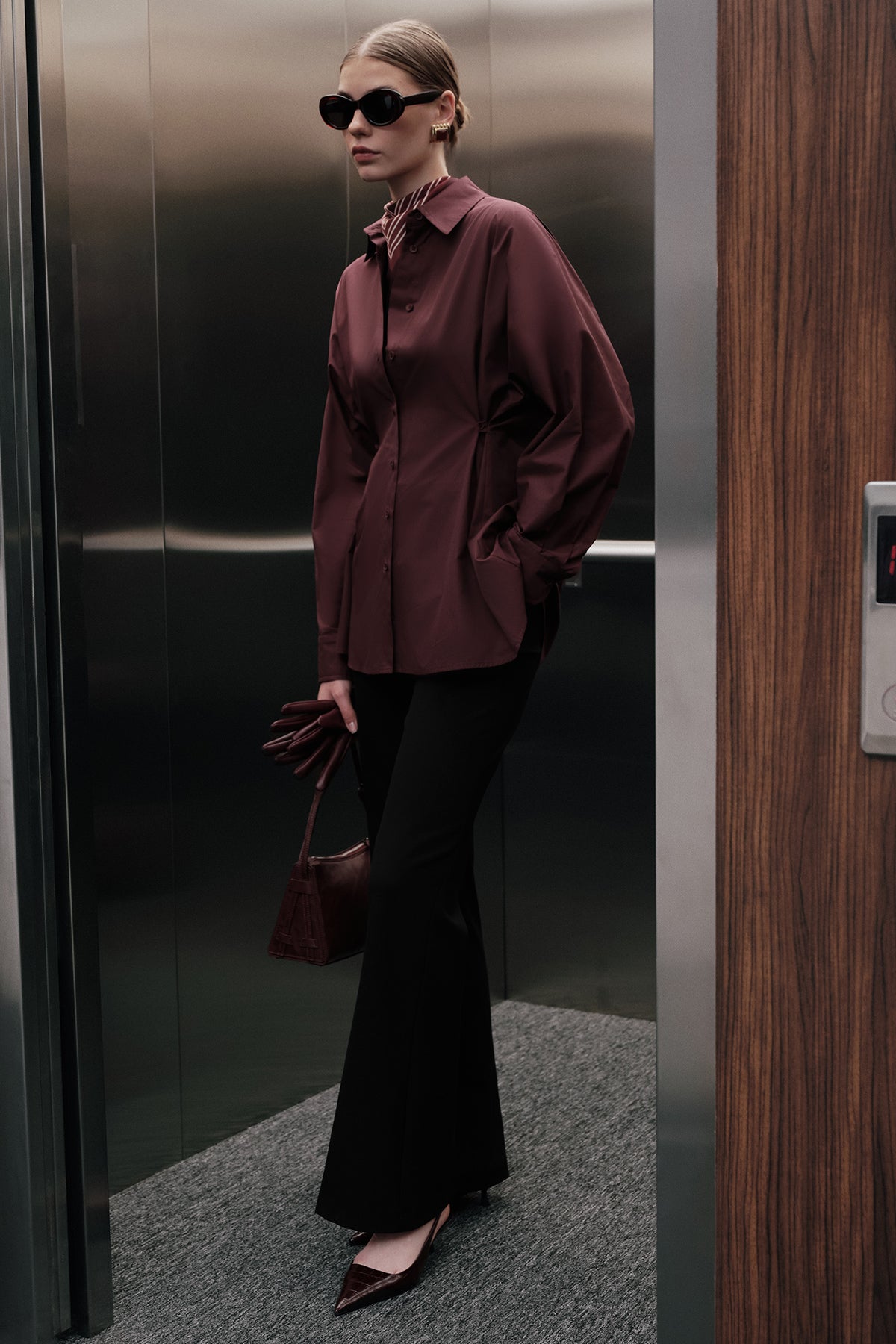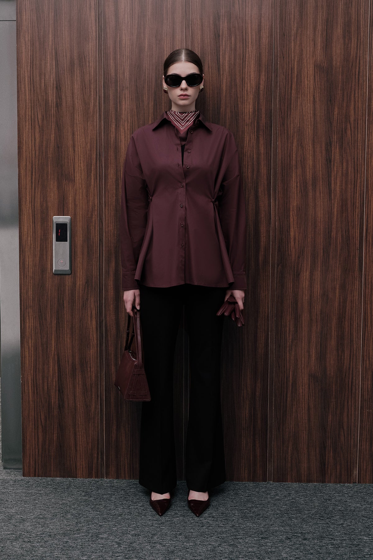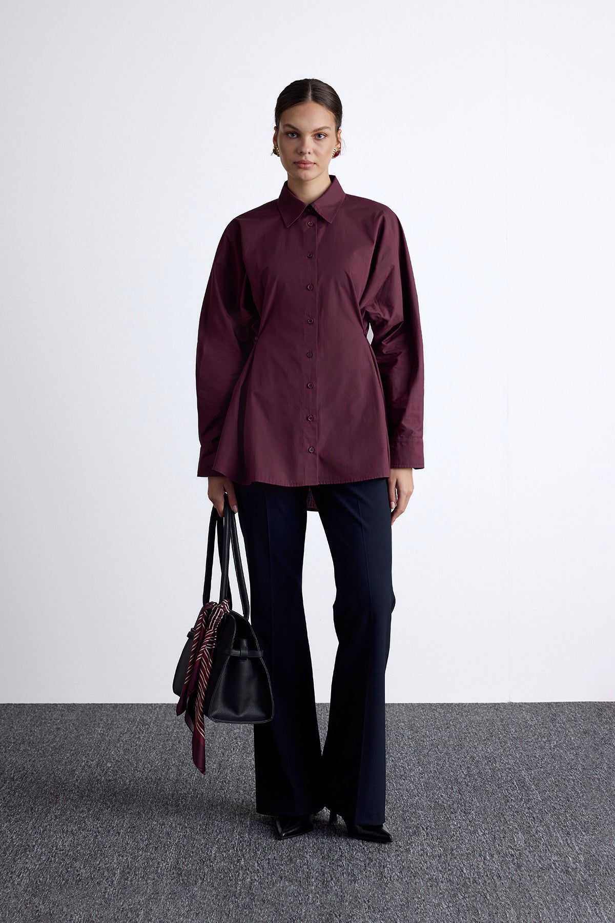 Ayarlanabilir Bel Gömlek Bordo