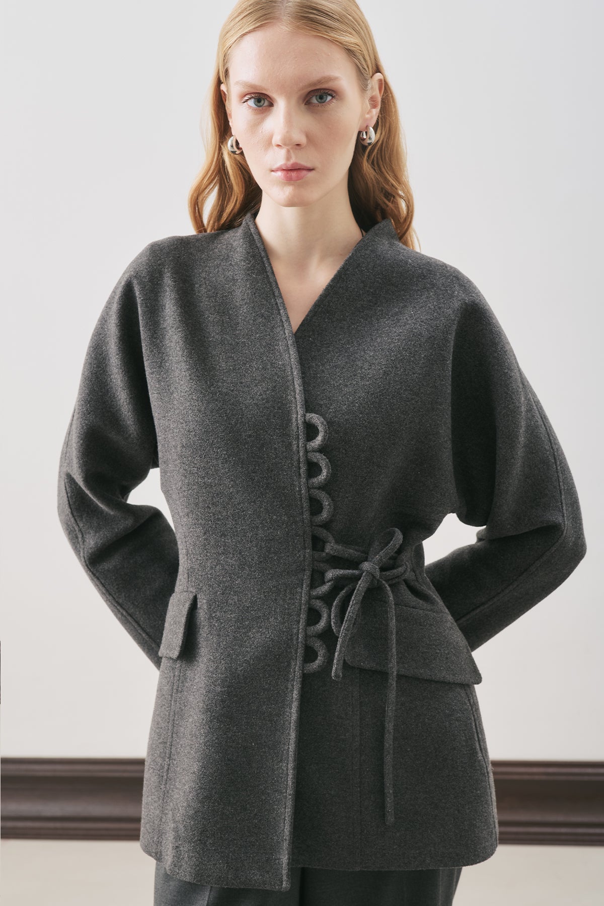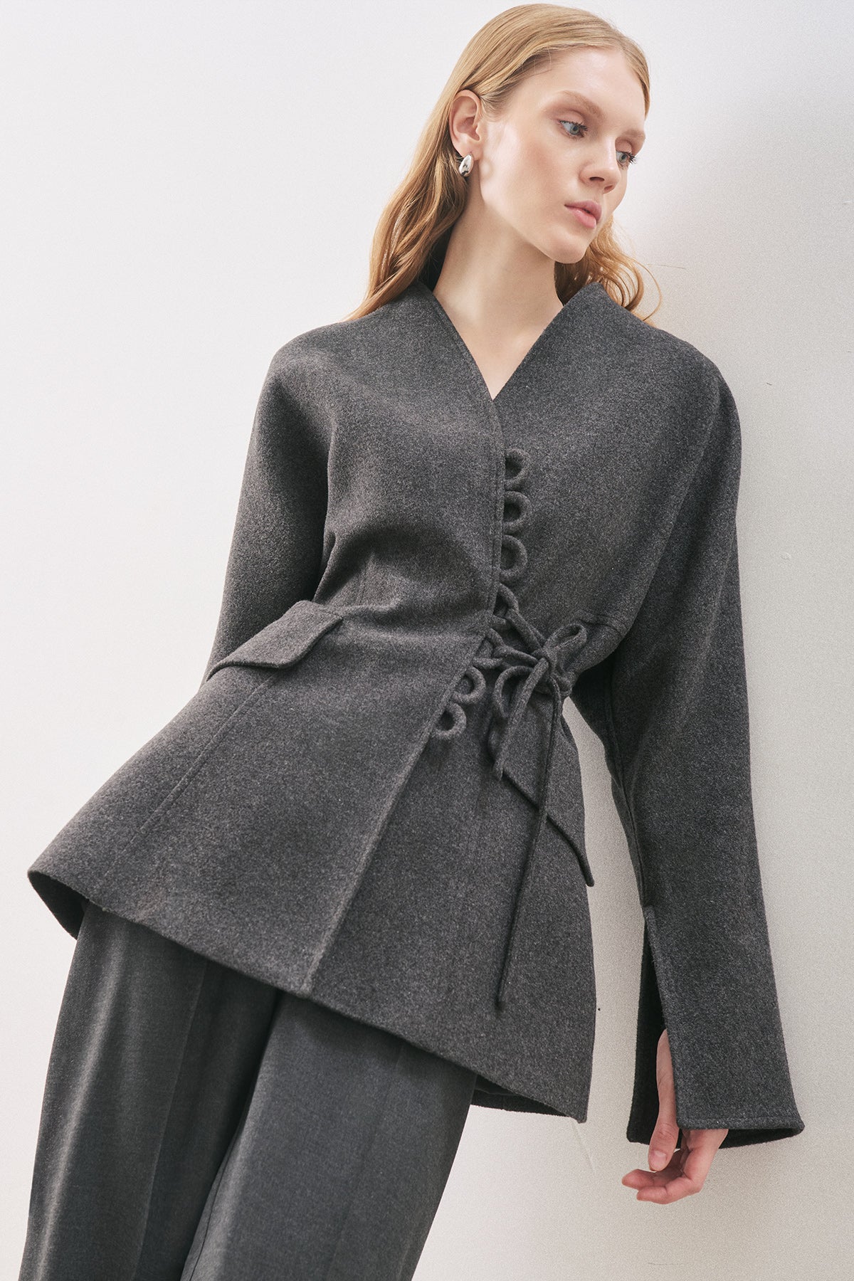 Aroa Tie-Detail Wool Coat Anthracite