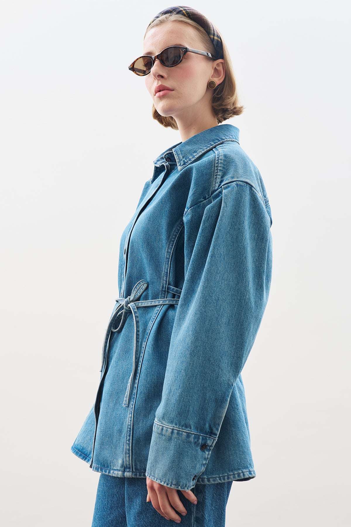 Tie-Detail Denim Shirt Blue