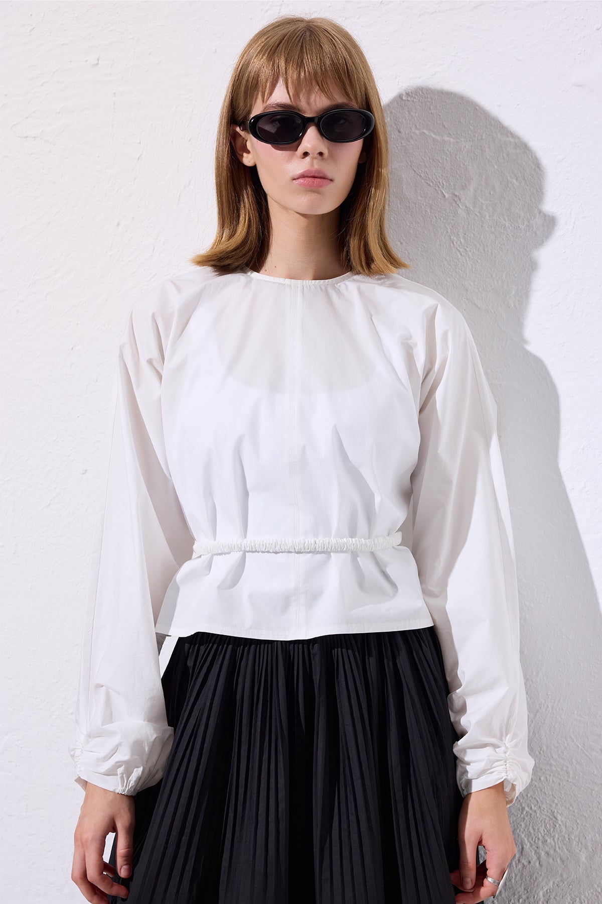 BAĞLAMA DETAYLI KISA BLUZ EKRU