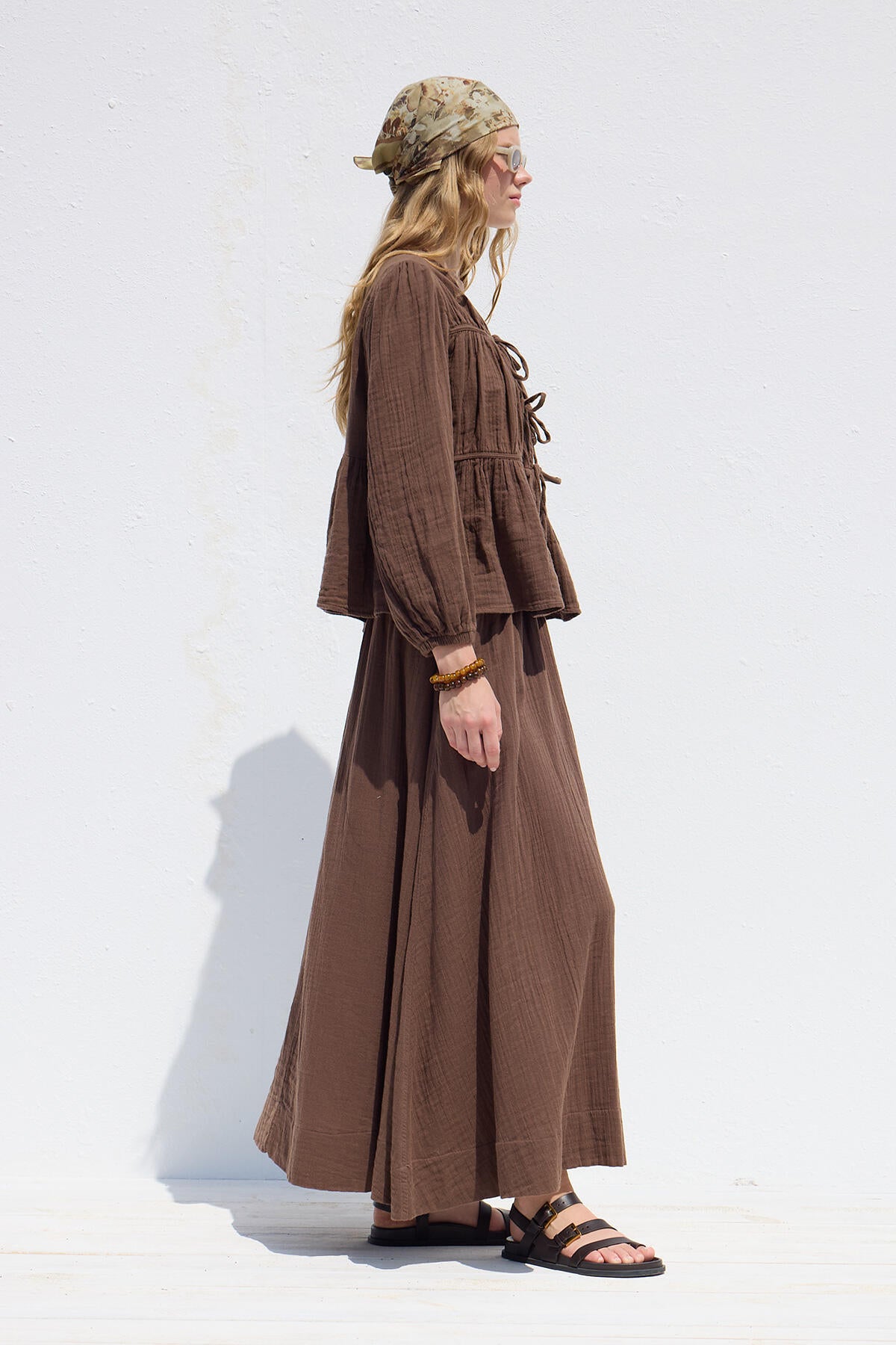 Bağcıklı Muslin Bluz Kahverengi