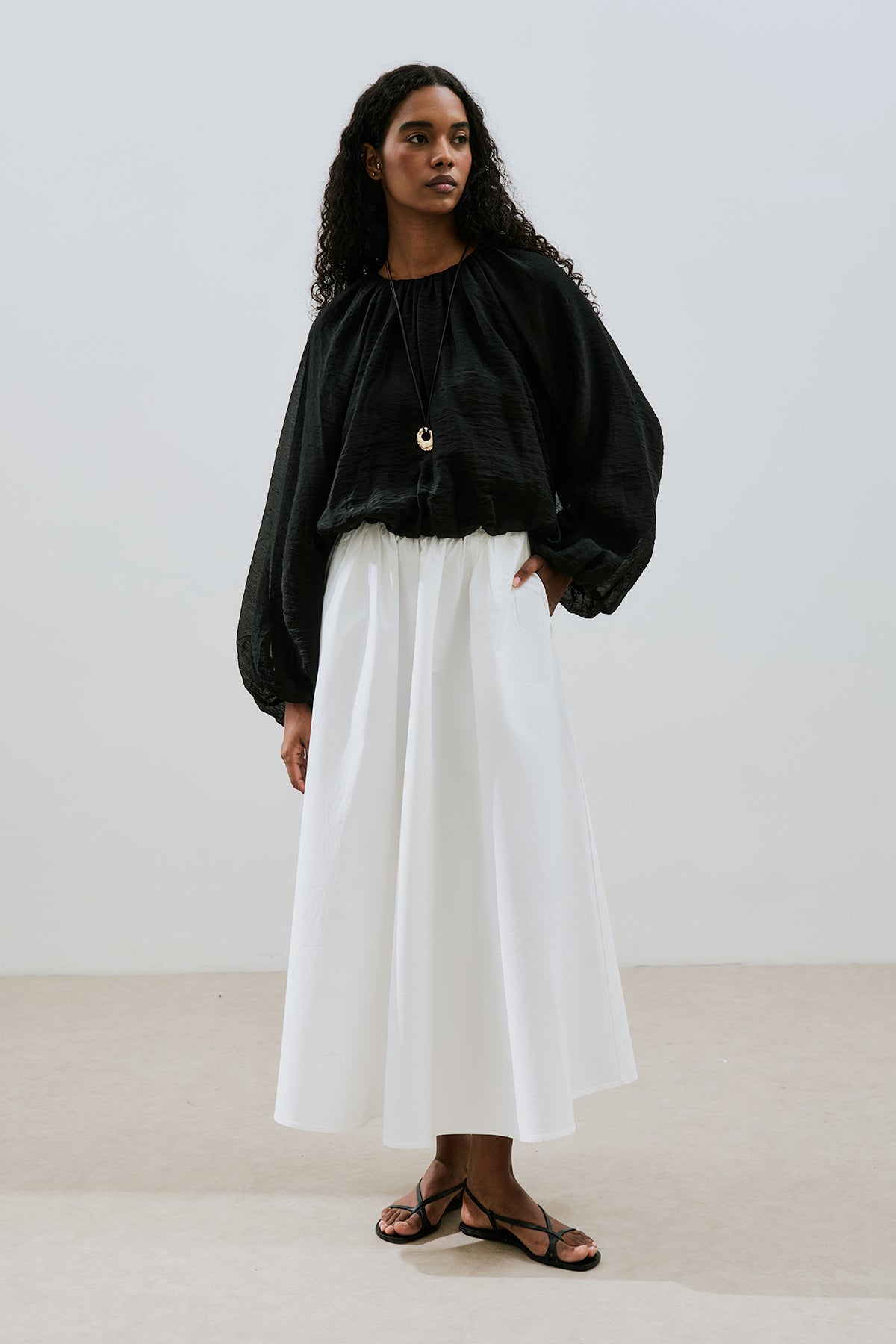 BALON FORM KISA BLUZ SİYAH
