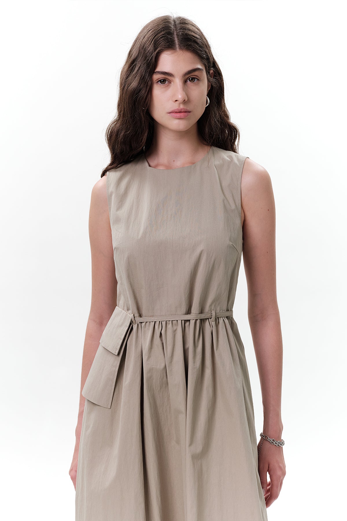 KEMER DETAYLI KOLSUZ ELBİSE YEŞİL