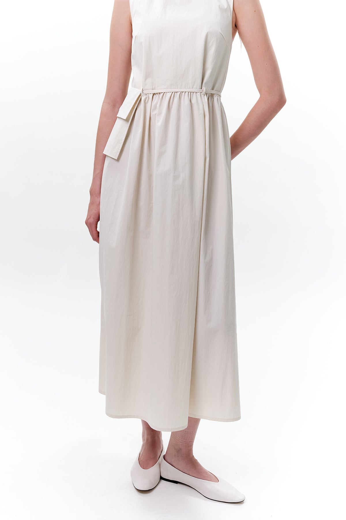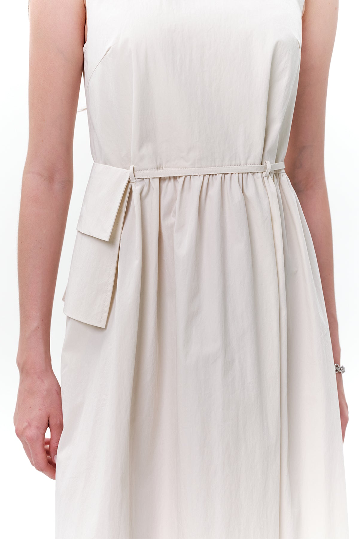KEMER DETAYLI KOLSUZ ELBİSE TAŞ