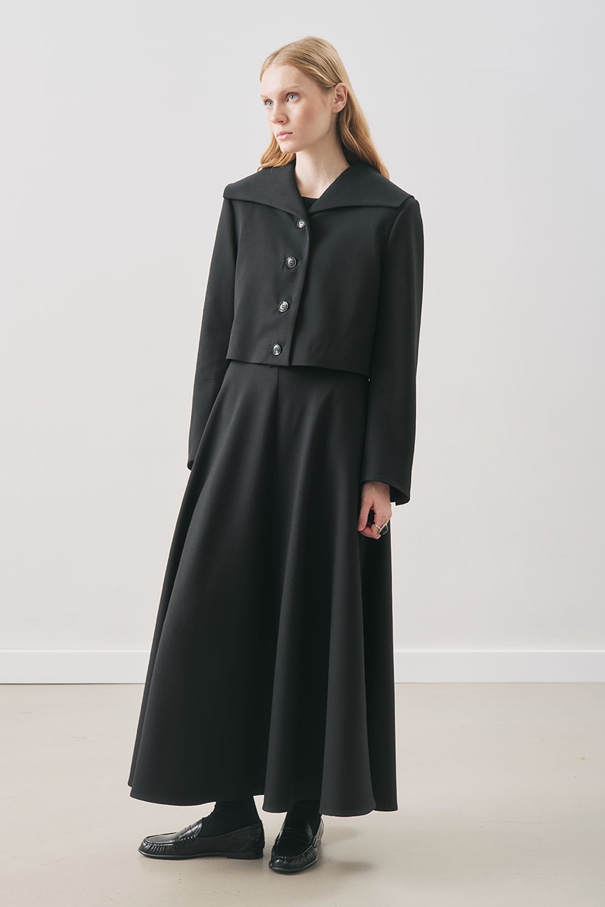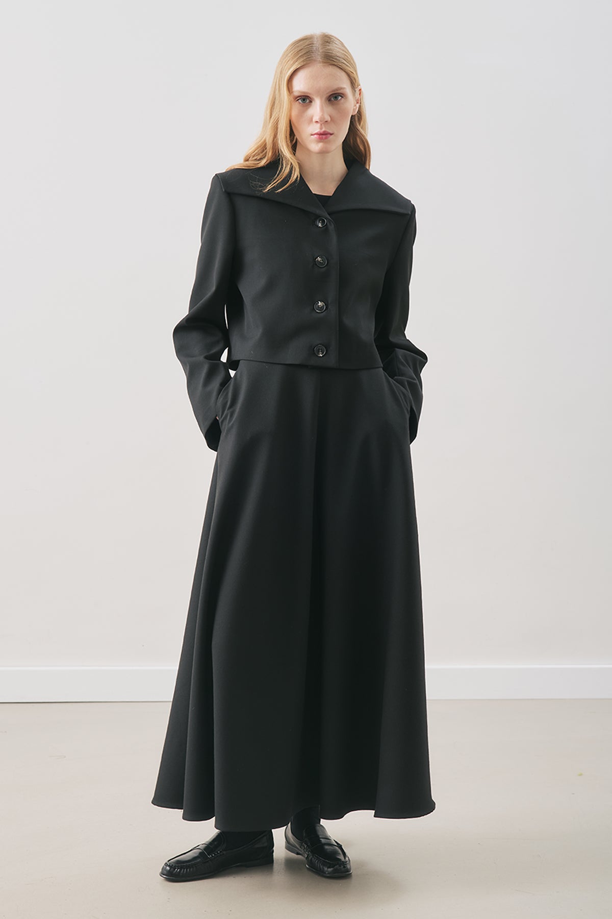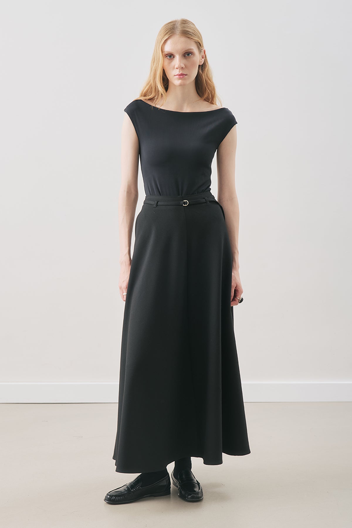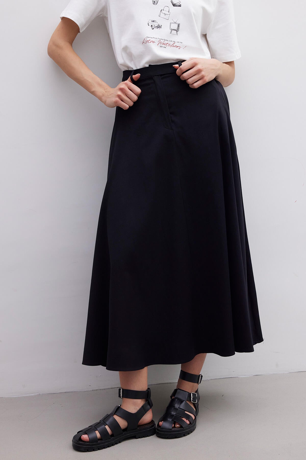 Kuşaklı Dökümlü Etek Siyah