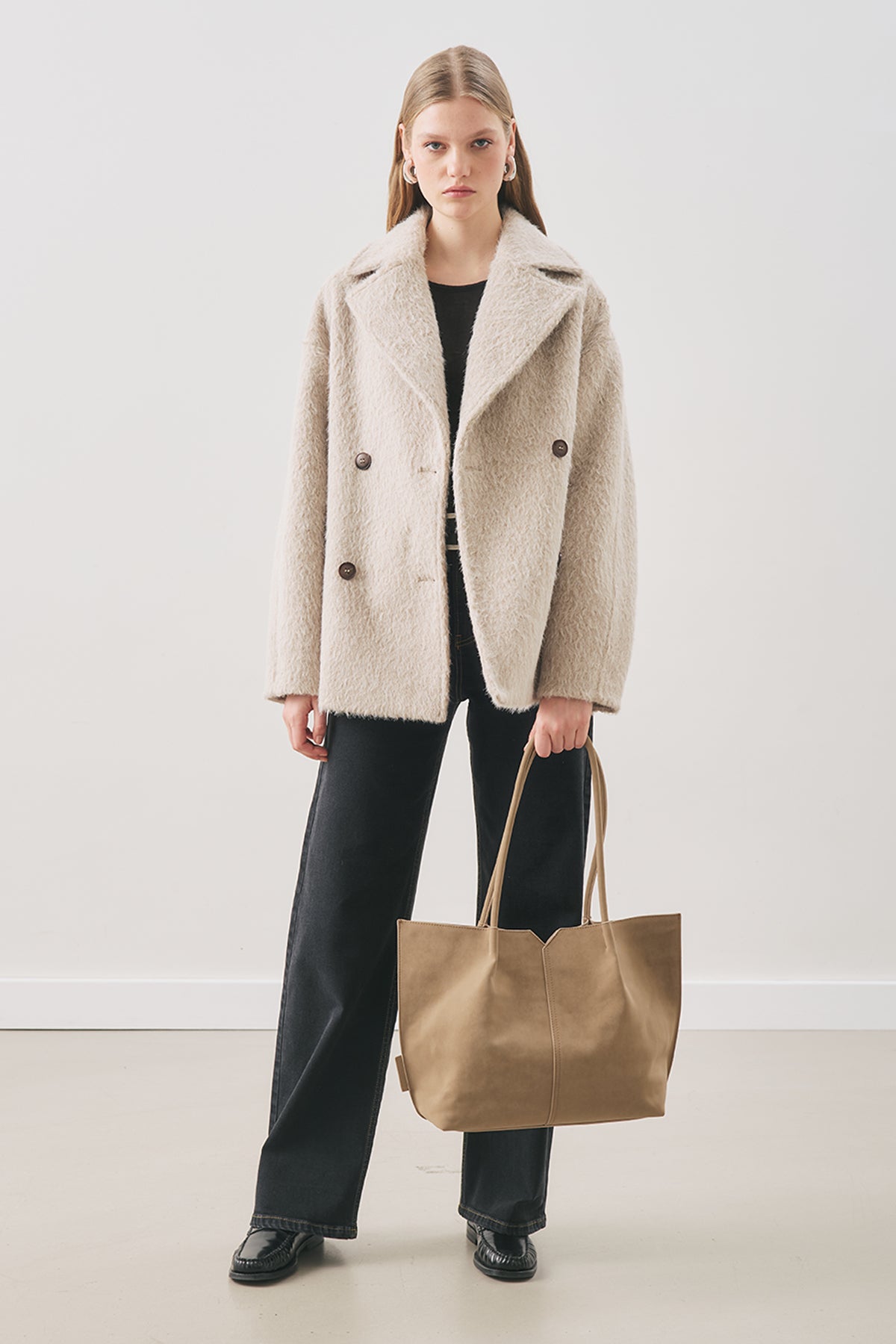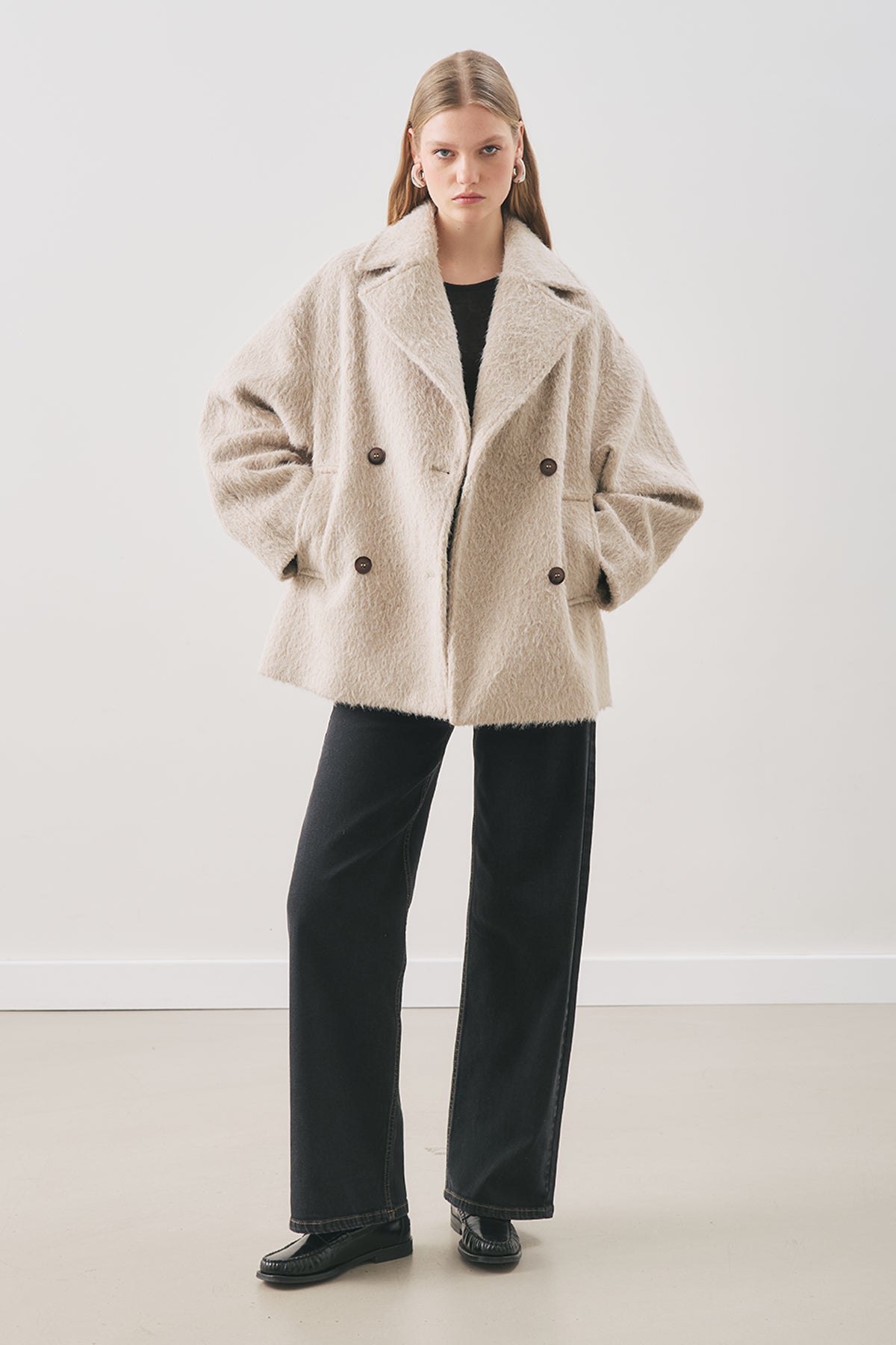 Nornal kalıp,kruvaze yaka,uzun kol,pile detaylı,ara boy,düğme kapamalı.