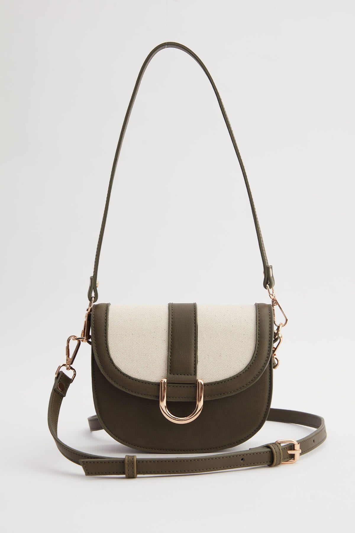 Toka Detaylı Kanvas Çanta Haki