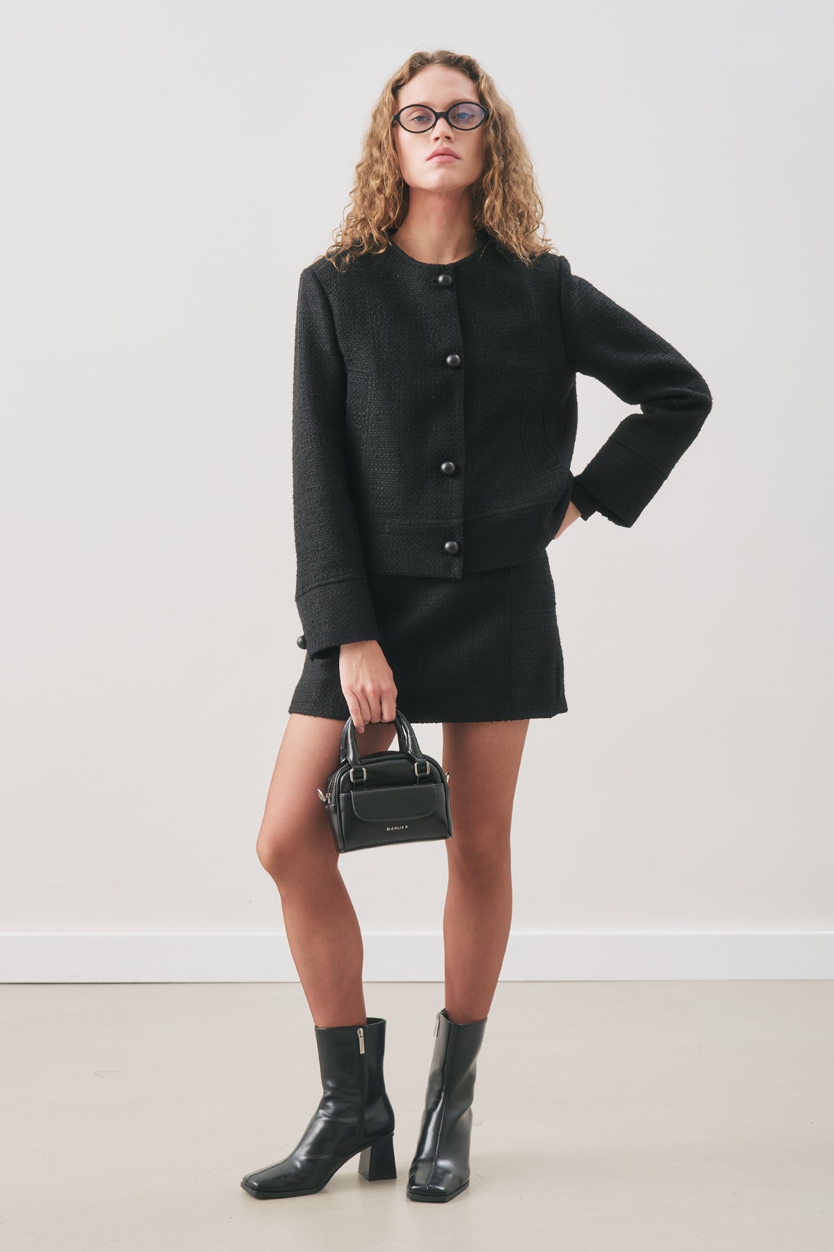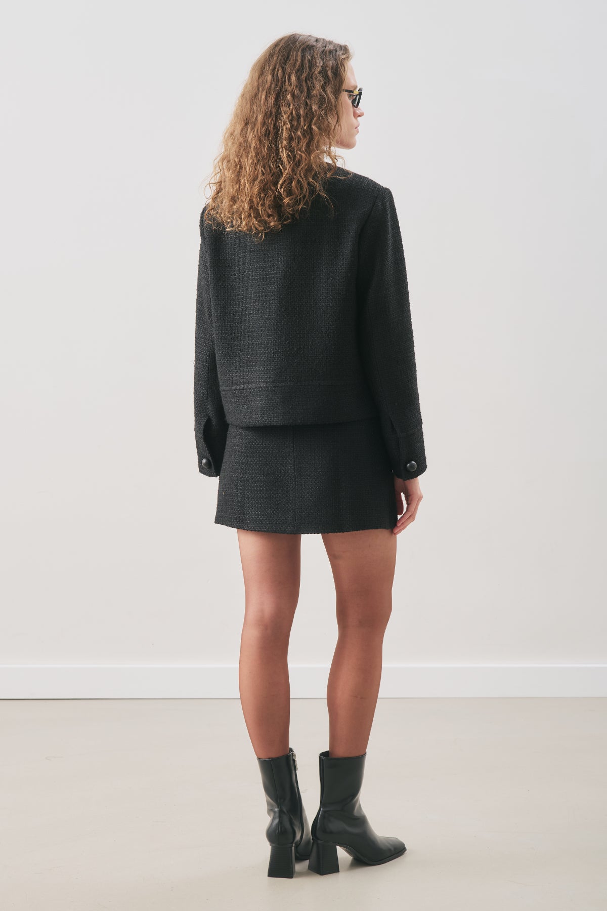 Textured Bouclé Short Jacket Black