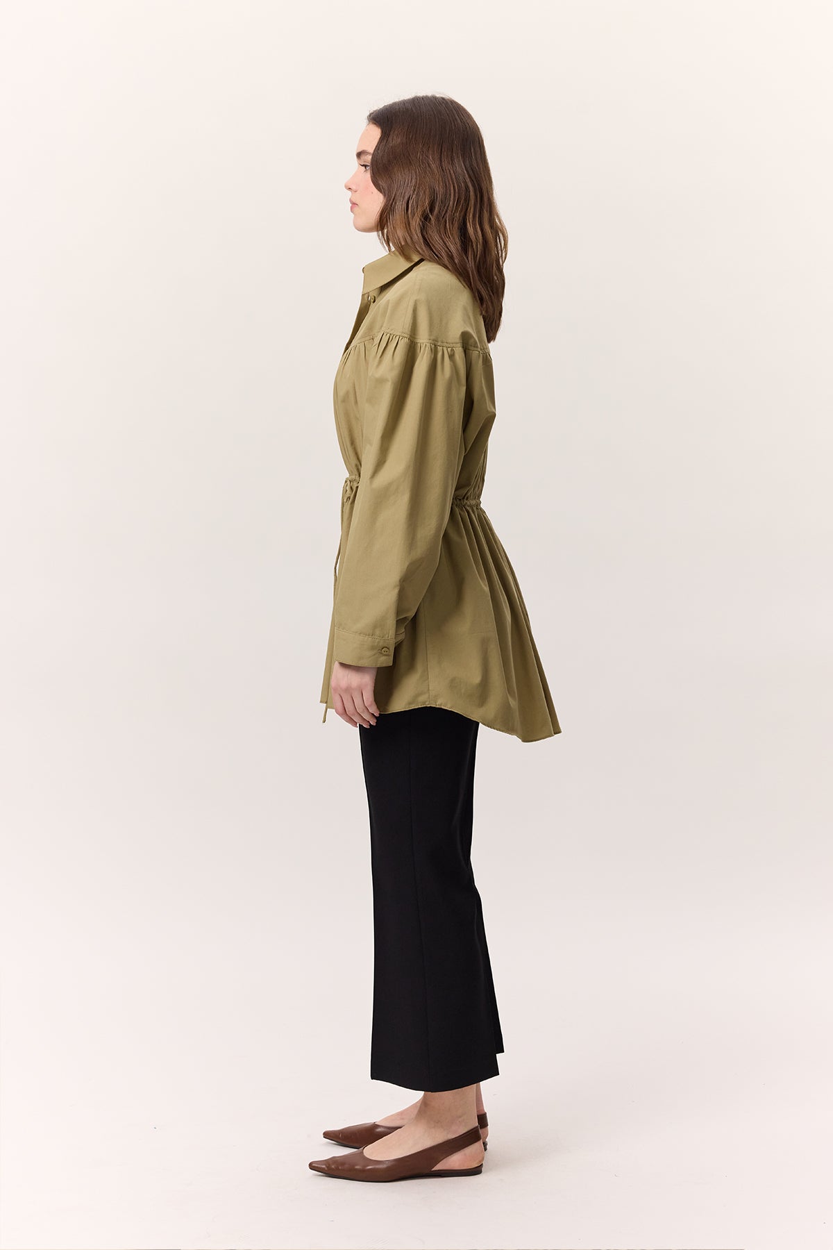 Büzgülü Bağcık Detaylı Tunik Zeytin Yeşili