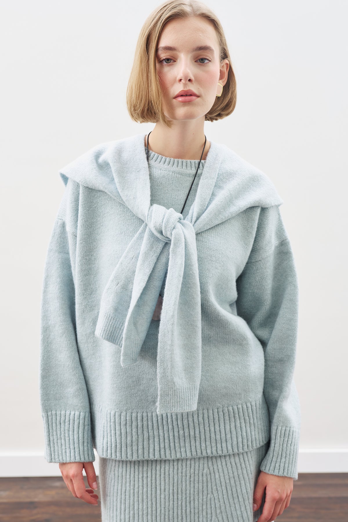 Yuvarlak yaka, uzun kol, oversız kalıp.