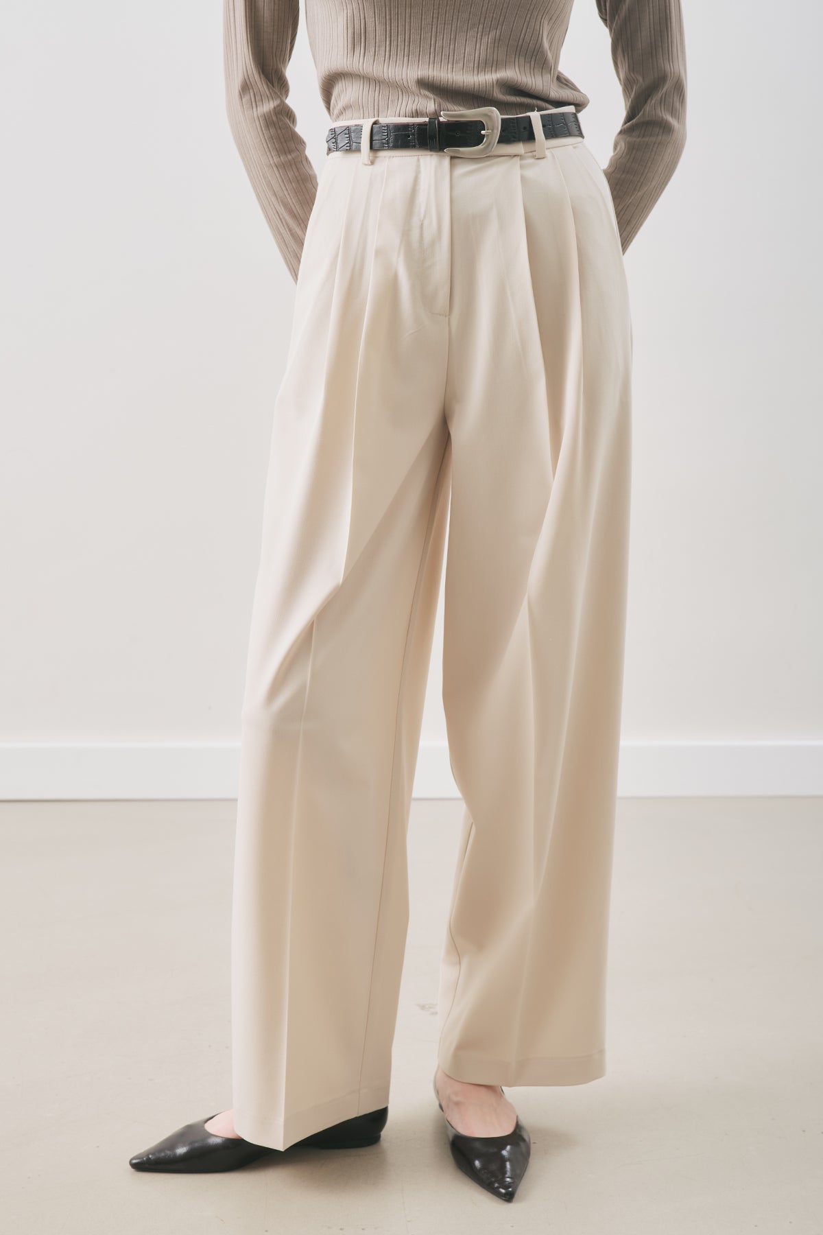 Classic Pleated Trousers Beige