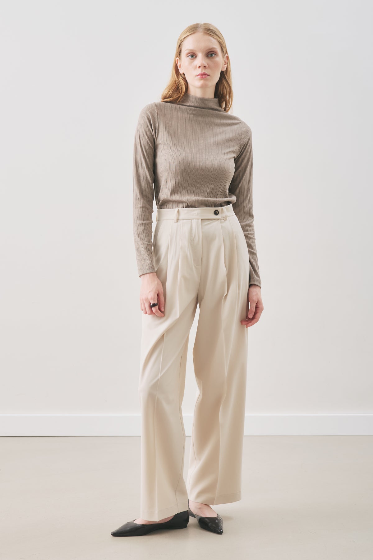 Normal kalıp,yüksek bel,pileli,tam boyfermuarlı, düğmeli.