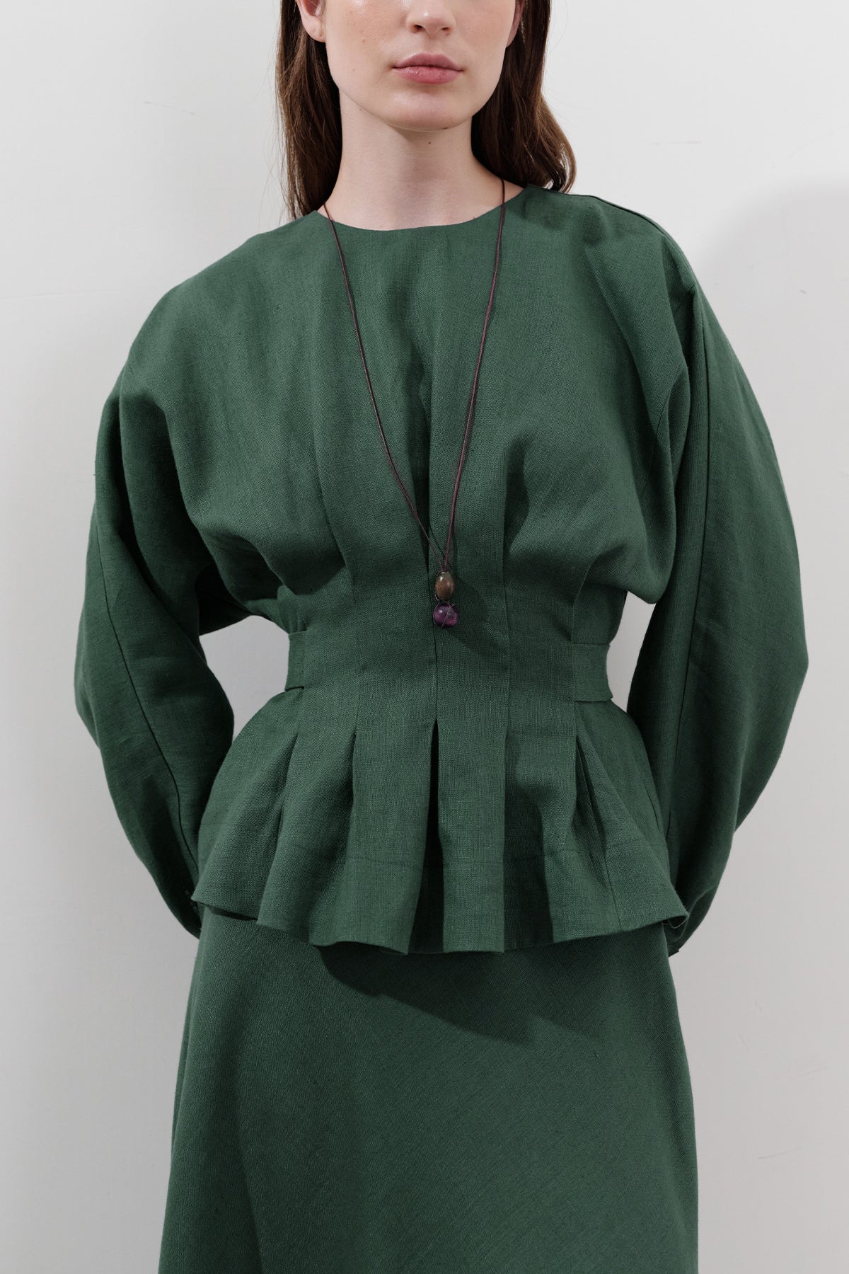 Çapraz Bağlamalı Keten Bluz Mavi Yeşil