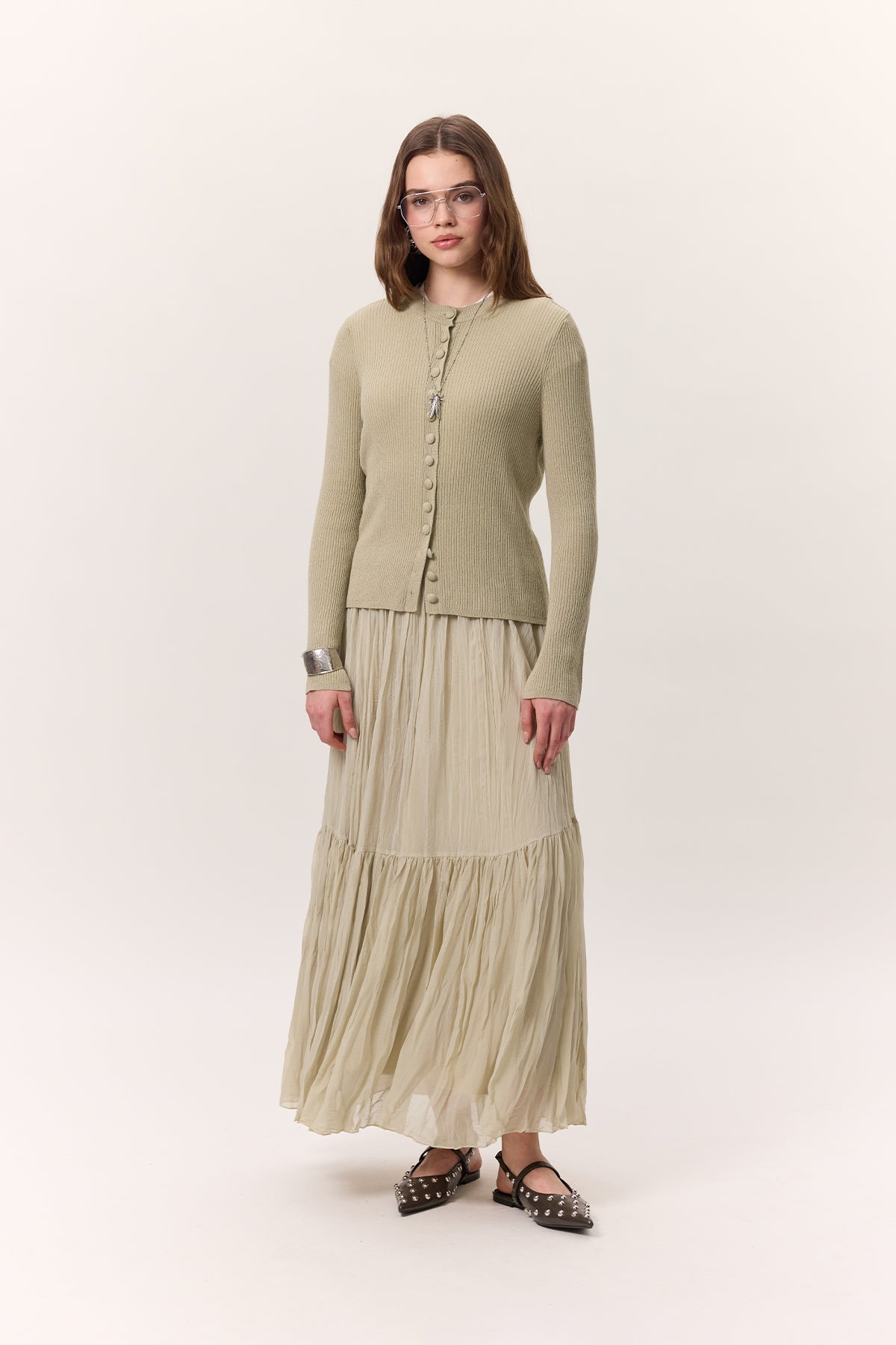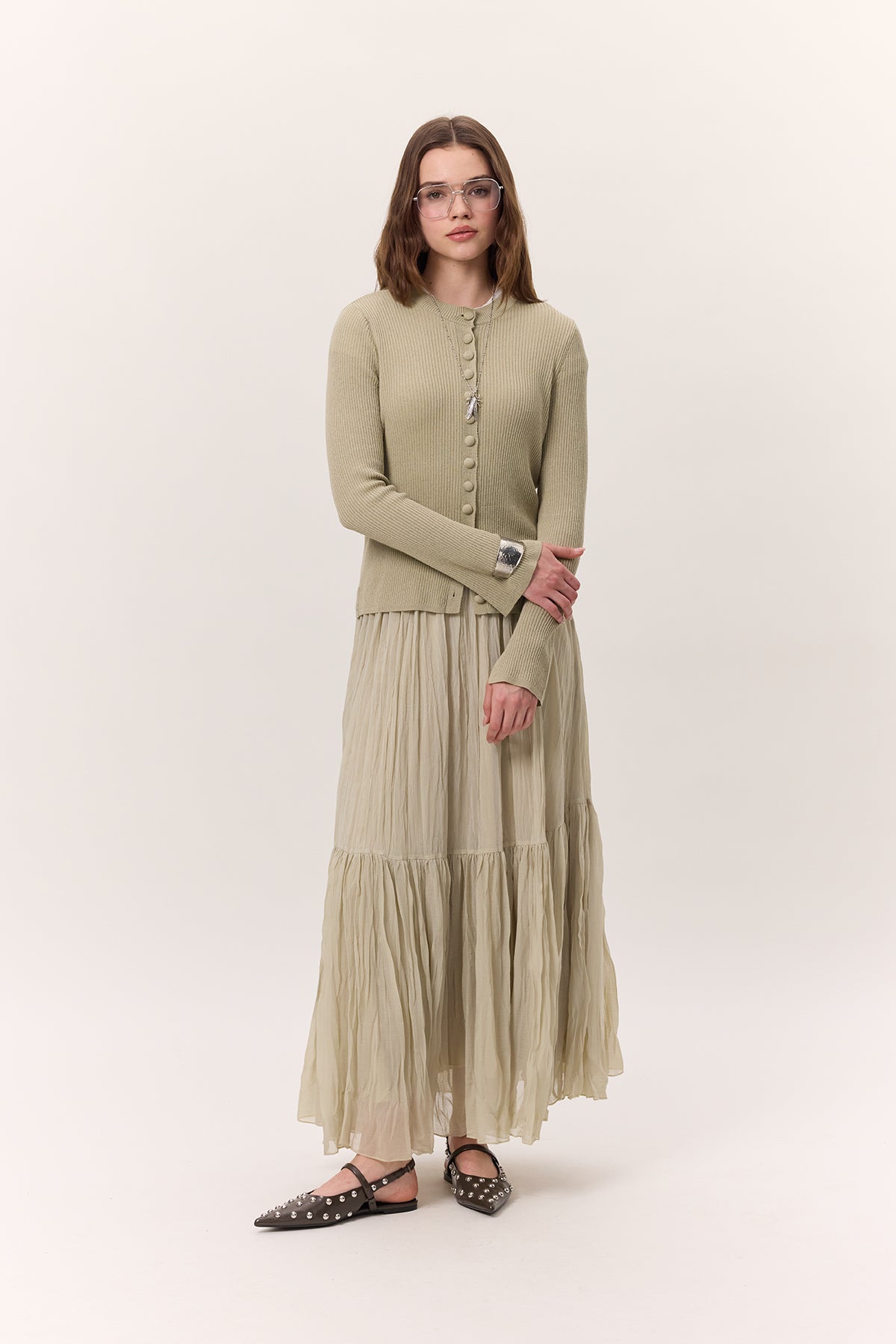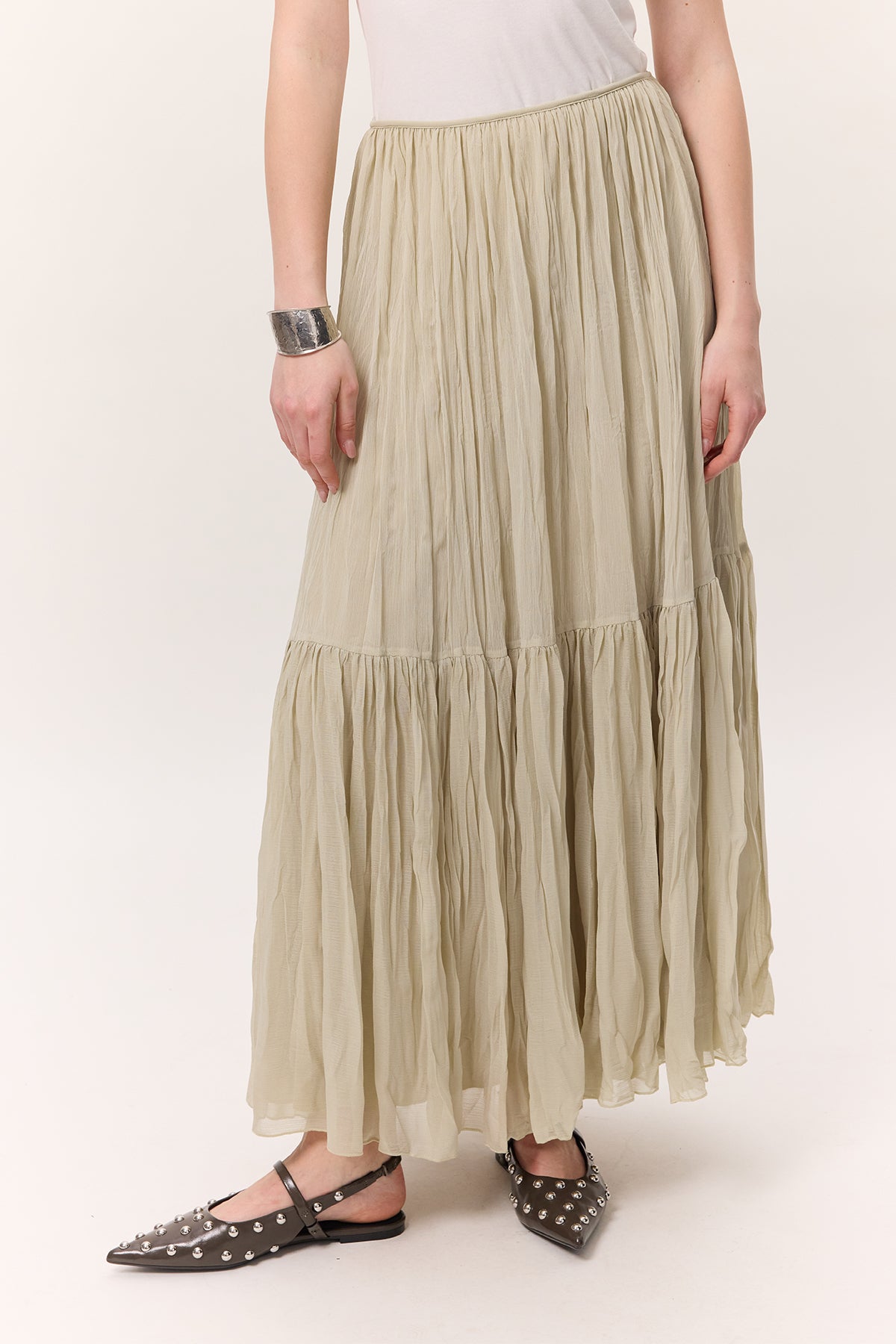 Ezilmiş Pileli Uzun Etek Adaçayı Yeşili