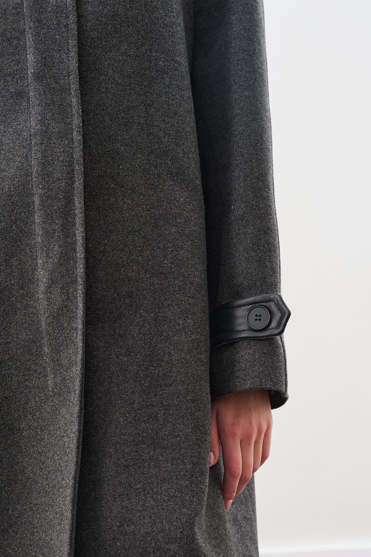 Wool Coat With Leather Details Anthracıte