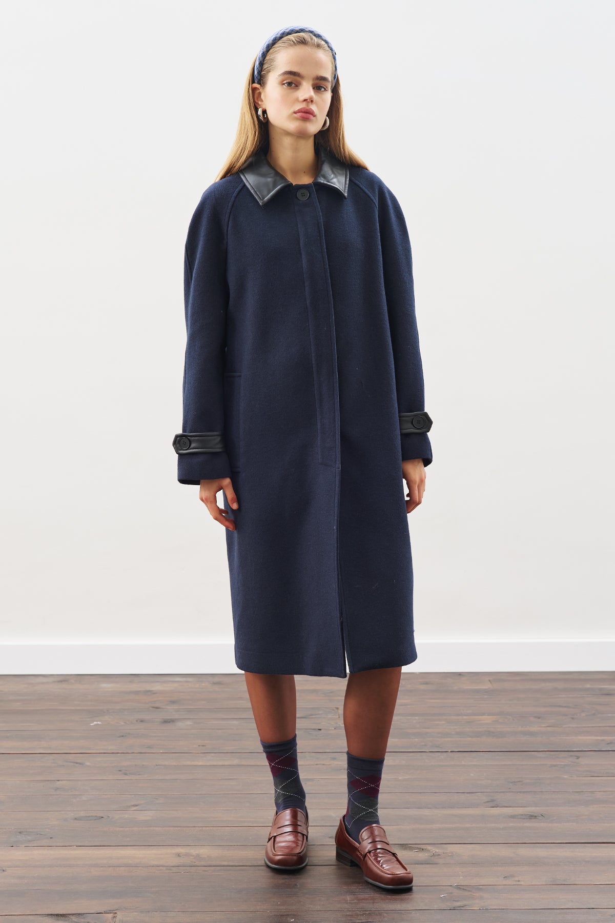 Wool Coat With Leather Details Navy Blue