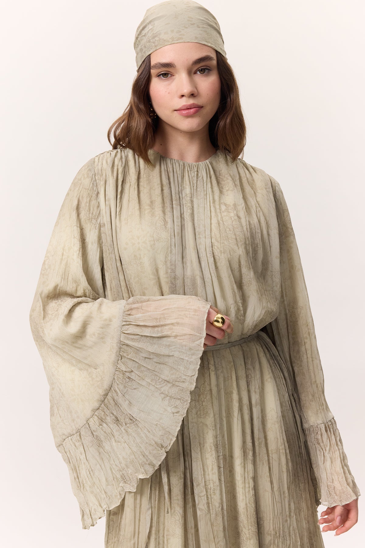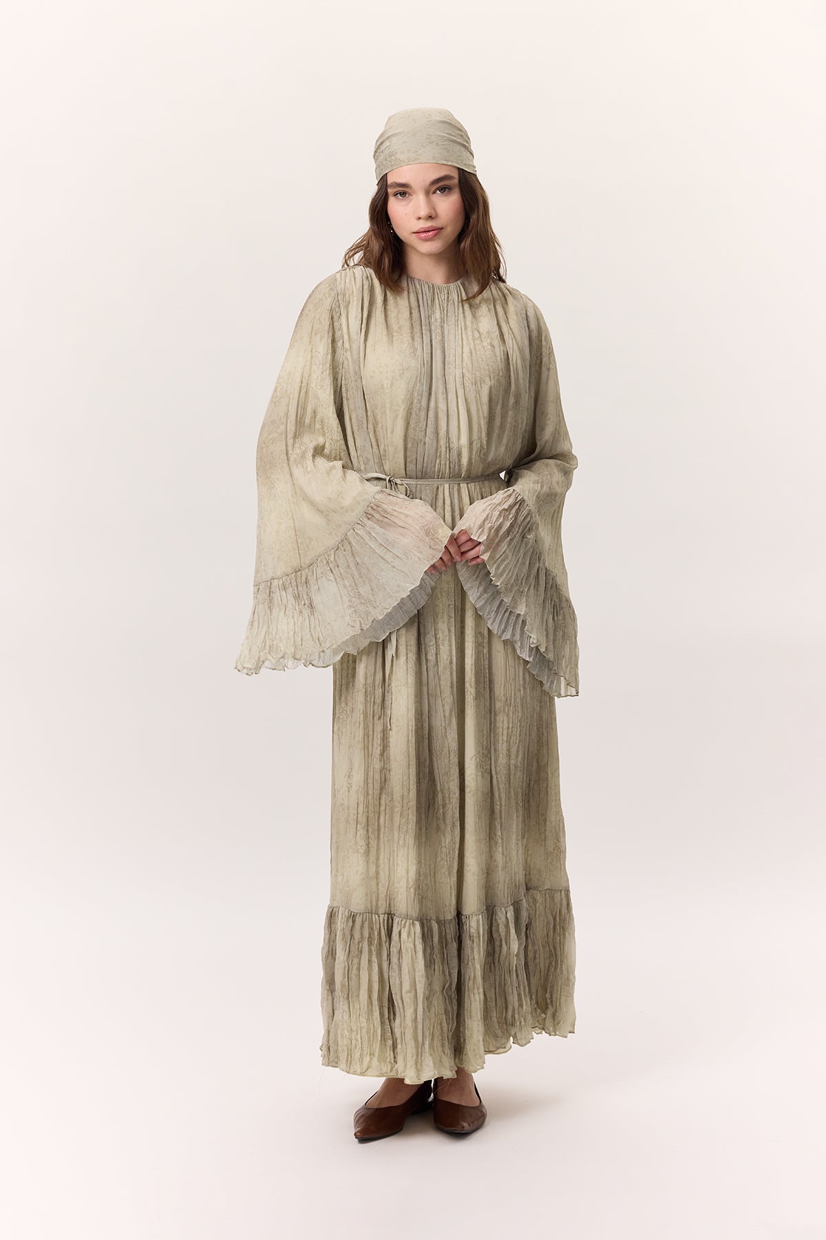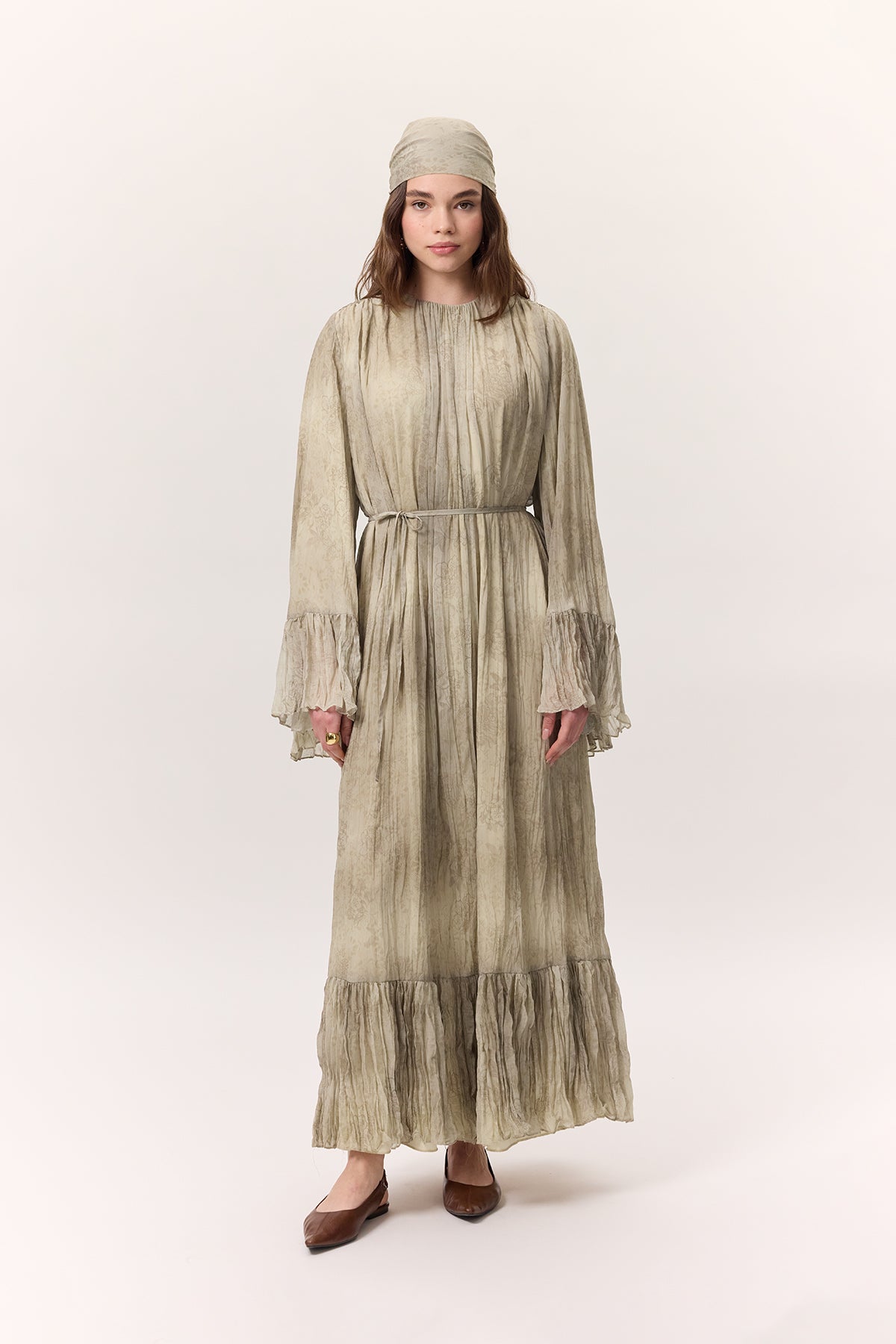Desenli Ezilmiş Katmanlı Elbise Ruby