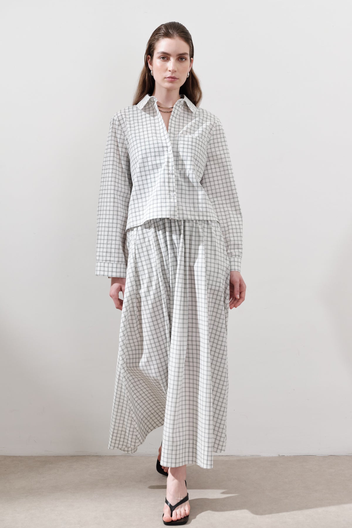 Desenli Poplin Etek Ekru