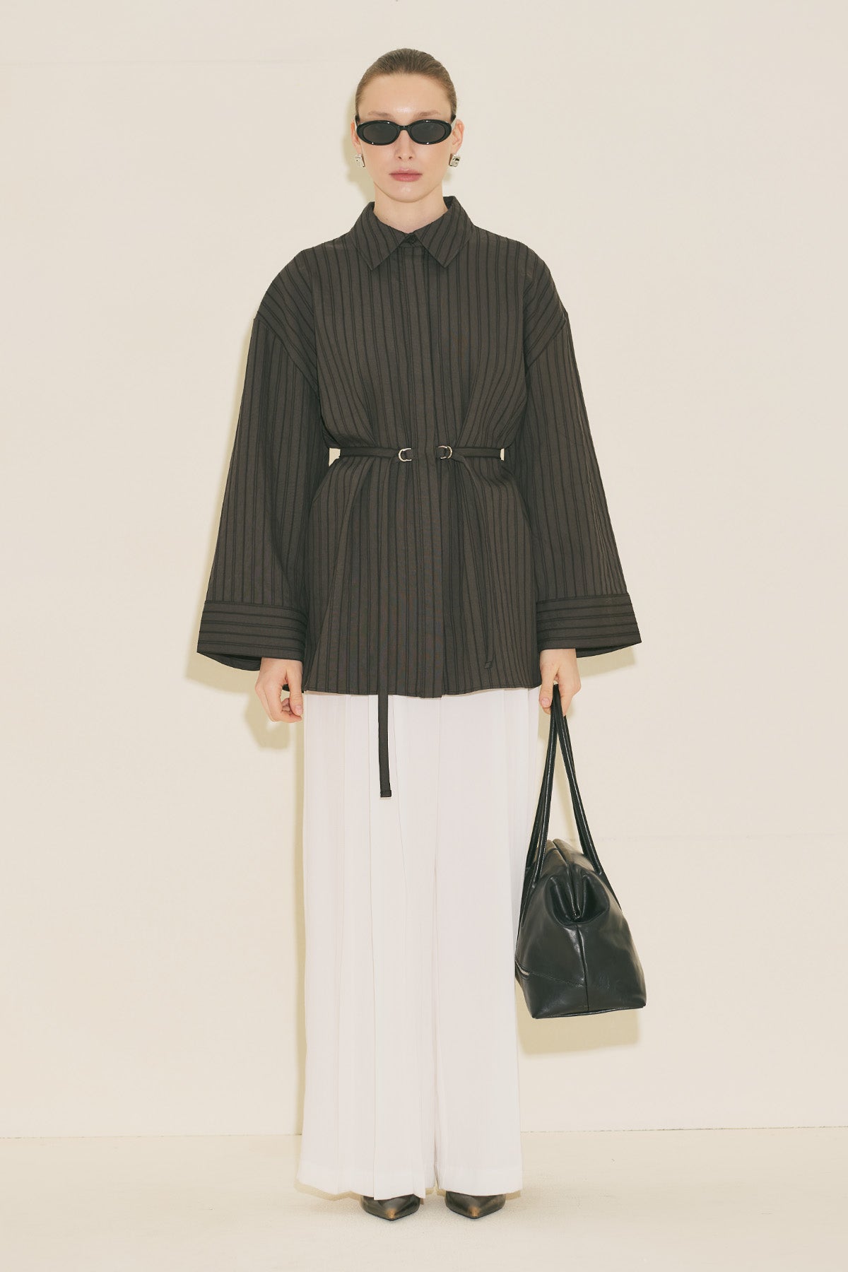 Woven Striped Shirt Brown