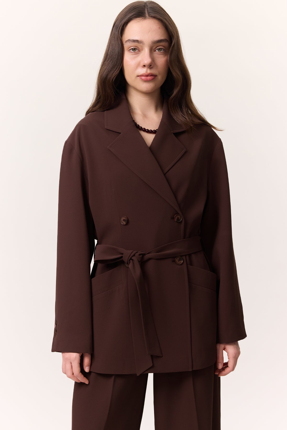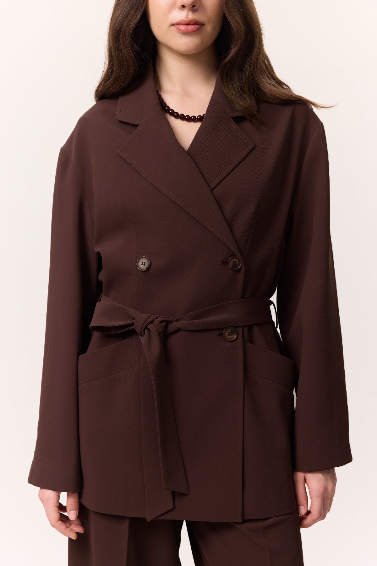Drapeli Kemerli Ceket Erik Rengi