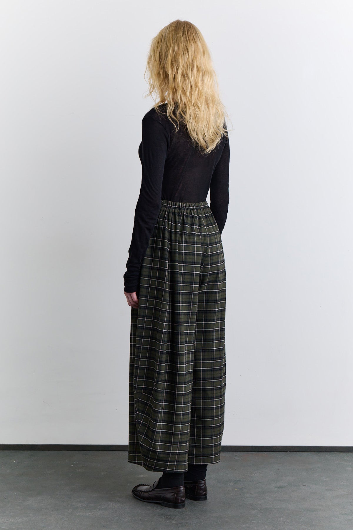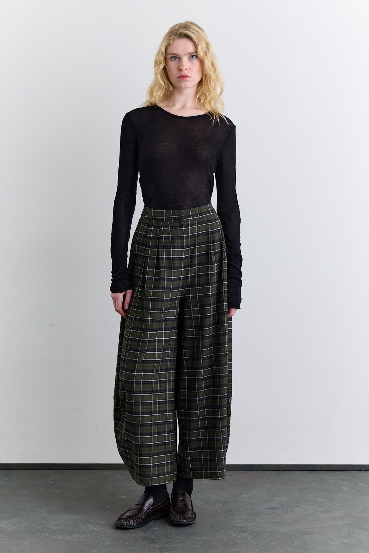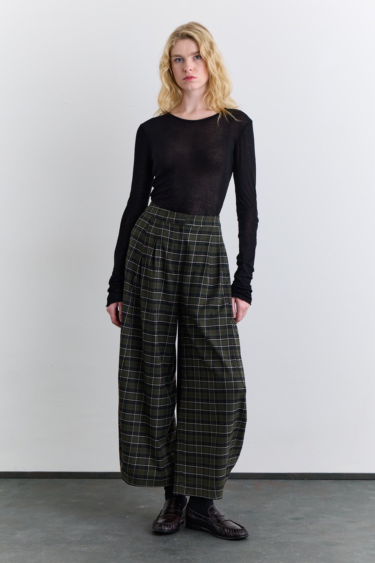 Checked Balloon Leg Trousers Green