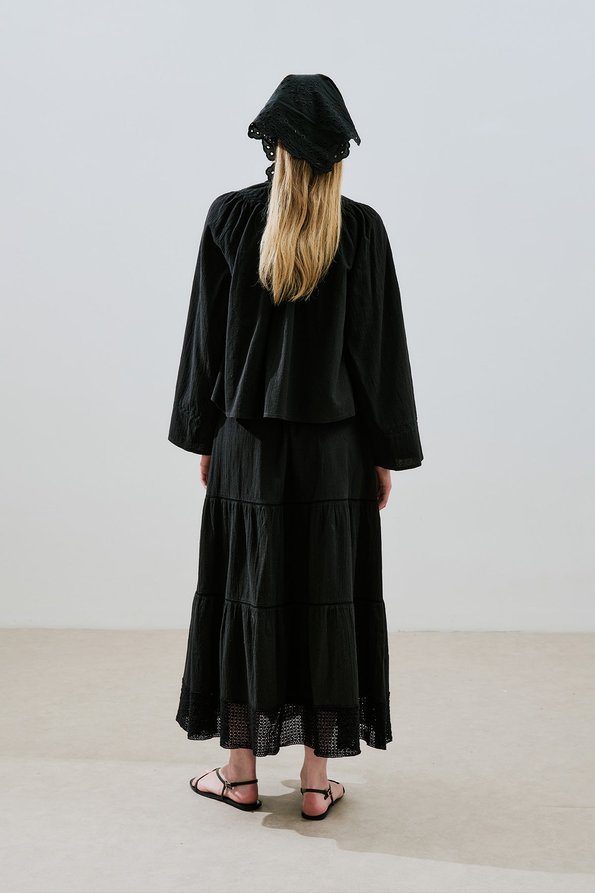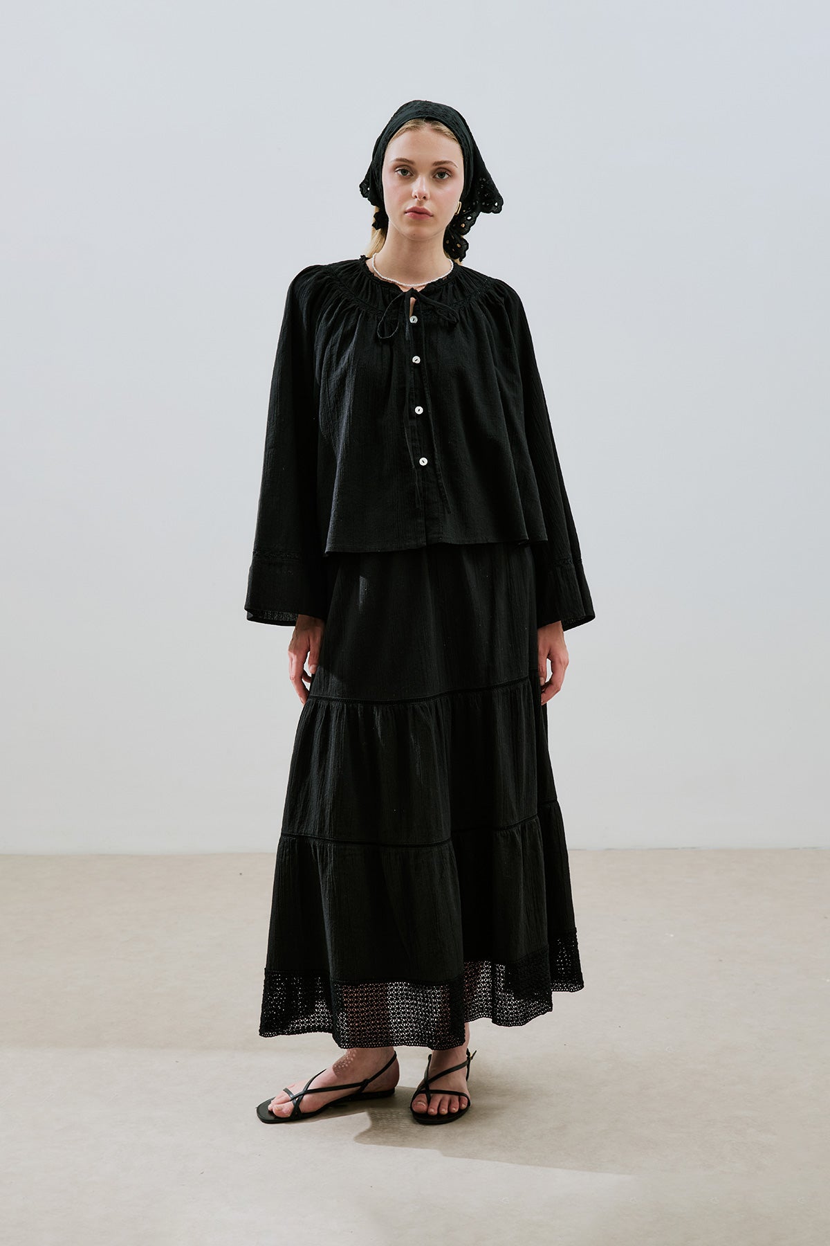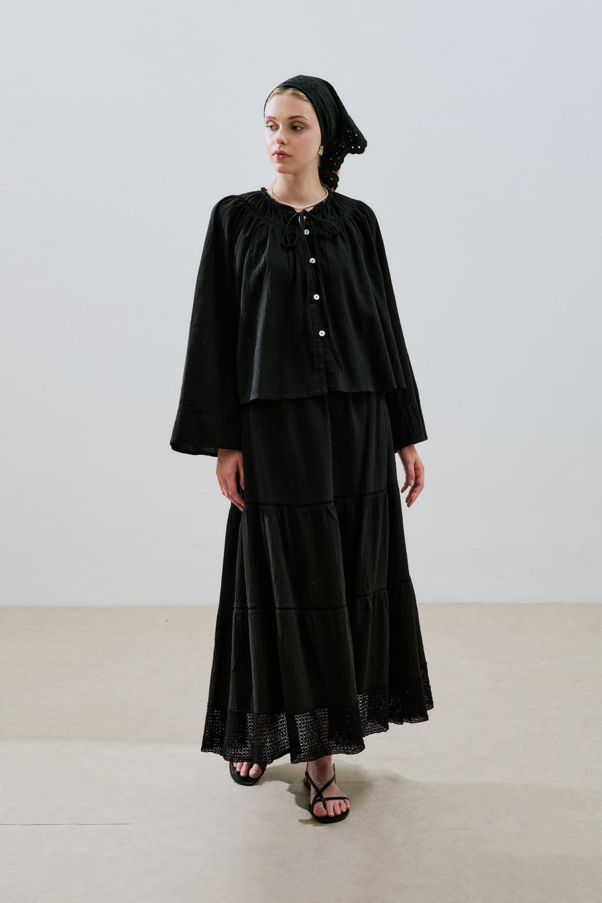 DOKULU İŞLEMELİ KISA BLUZ SİYAH