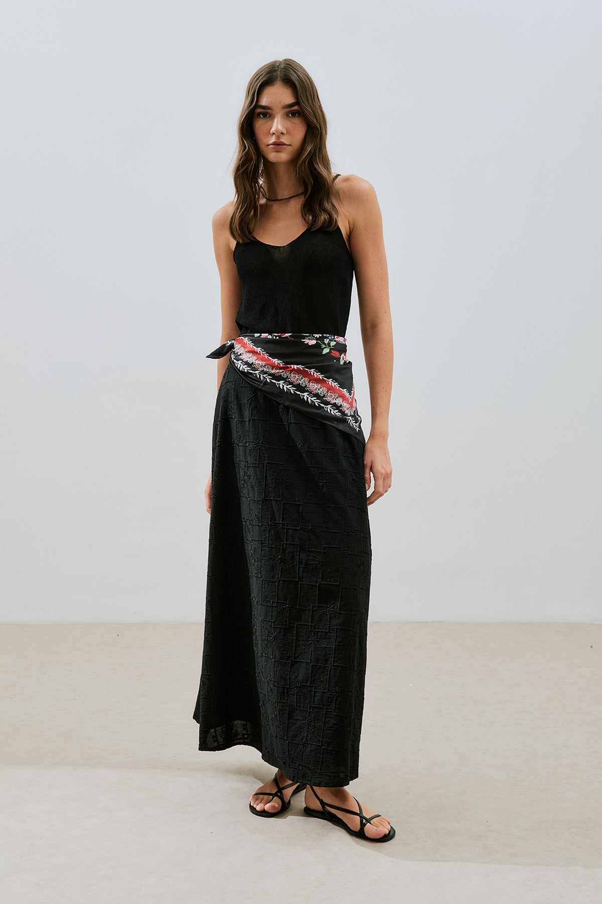 NAKIŞLI MİDİ ETEK SİYAH