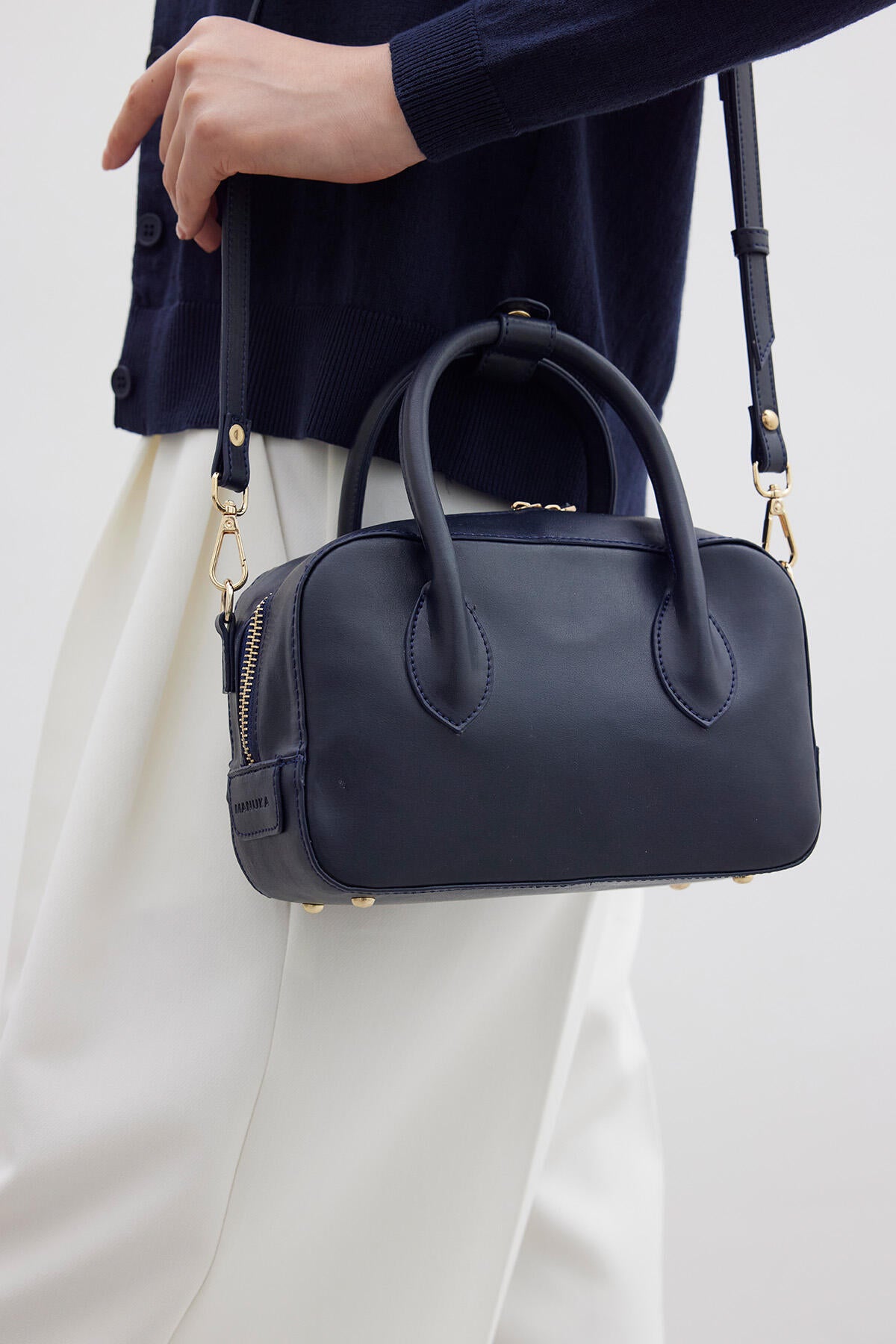 Bu şık çapraz askılı çanta ayarlanabilir bir kayış ve ek bir el kayışına sahiptir. Sapında çıtçıt detayı bulunan suni deriden yapılmış bir fermuarı vardır. Çanta astarlıdır ve ek işlevsellik için iç cep detaylarına sahiptir.