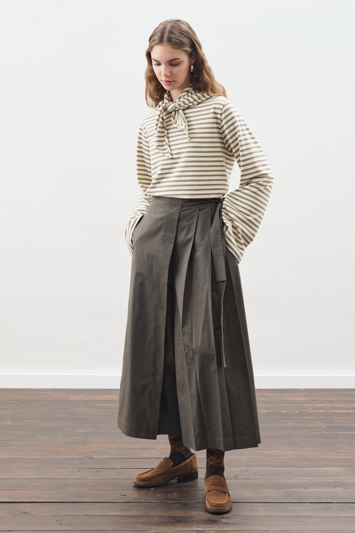 Yüksel bel,pileli,bağlamalı etek pantolon,tam boy,bağlamalı, normal kalıp.