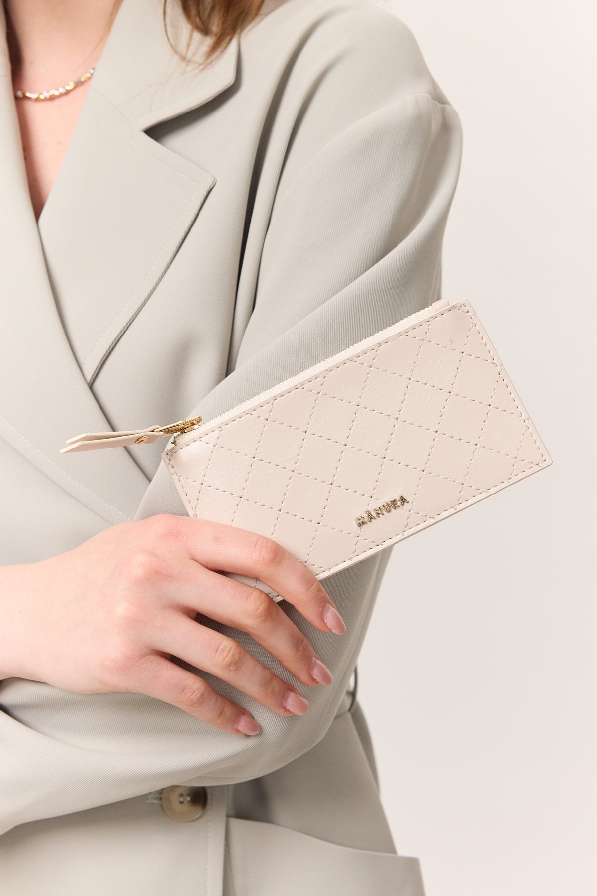 Fermuarlı Kartlık Bej