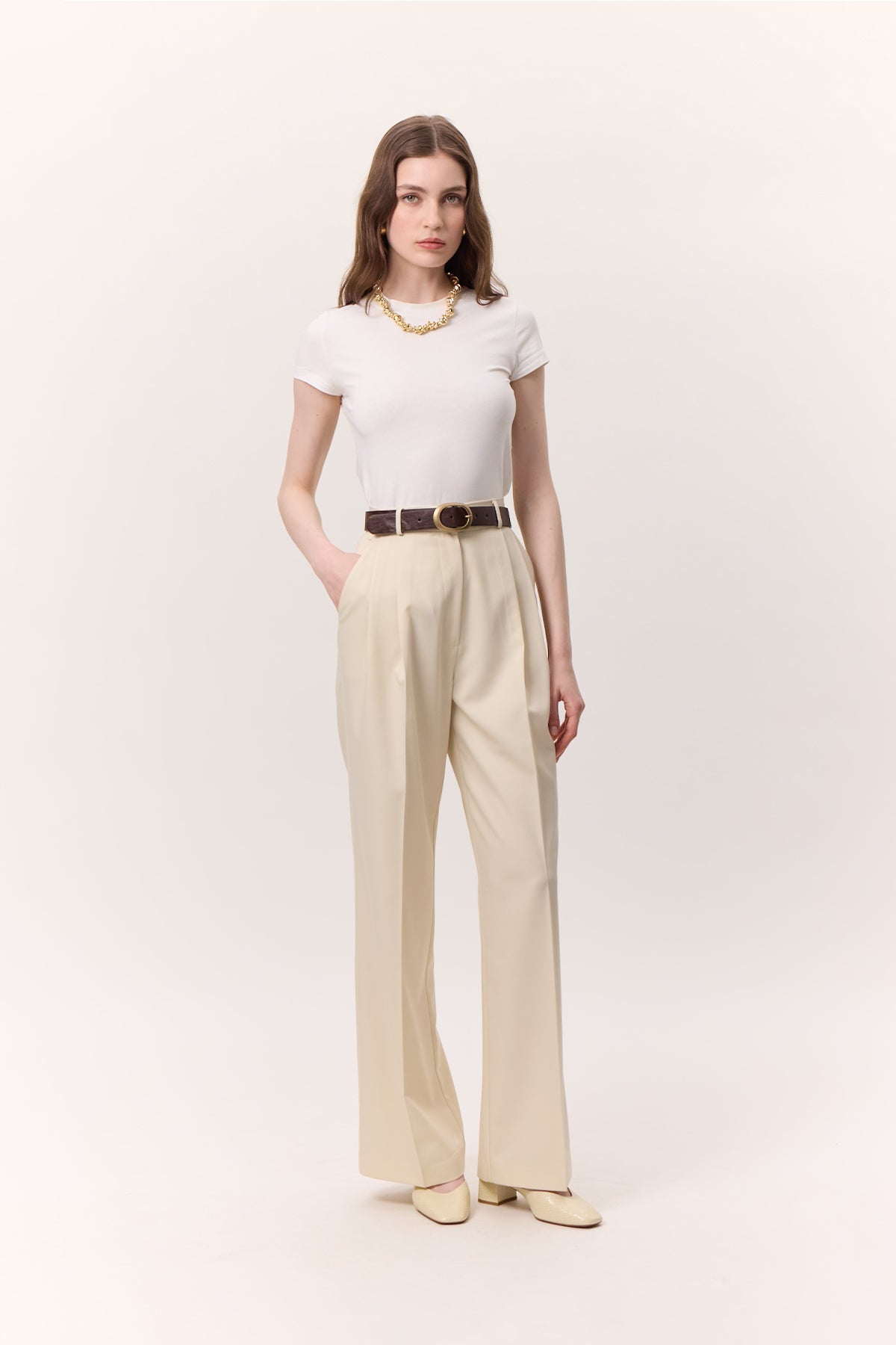 Geniş Paça Palazzo Pantolon Vanilya