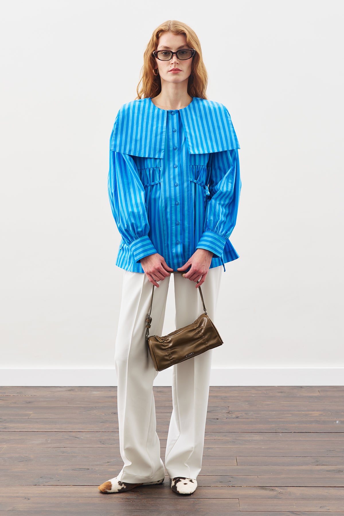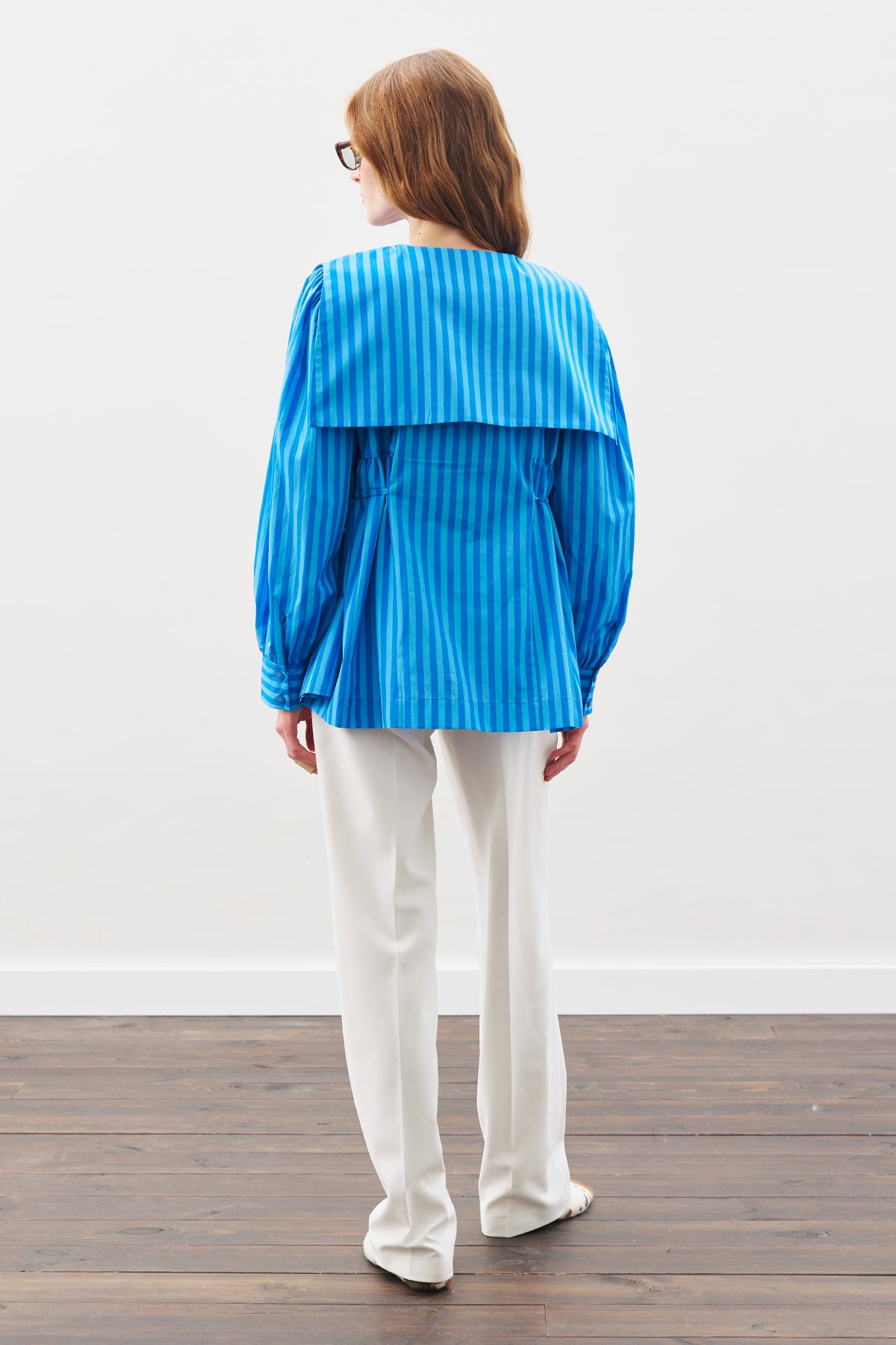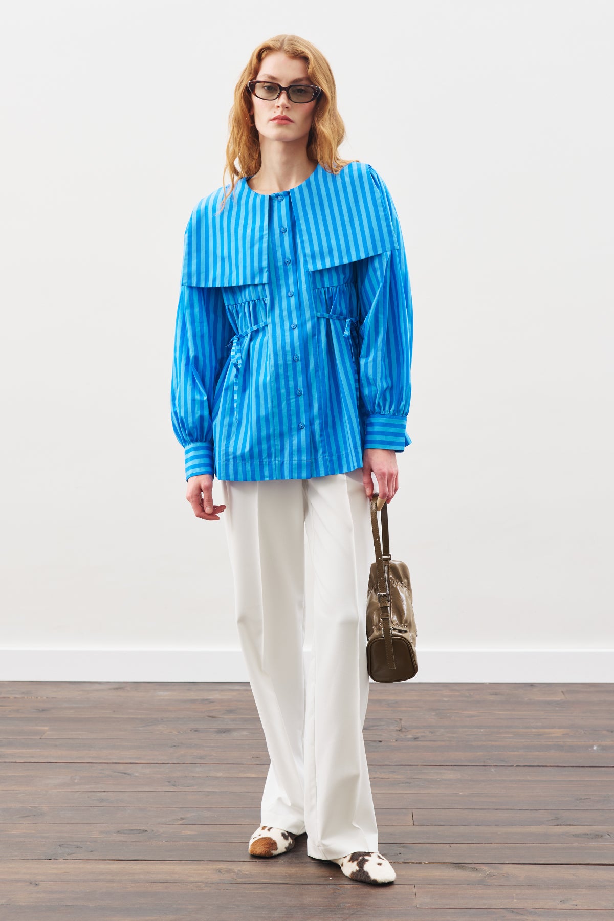 Belted Wide-Collar Shirt Blue Strıped