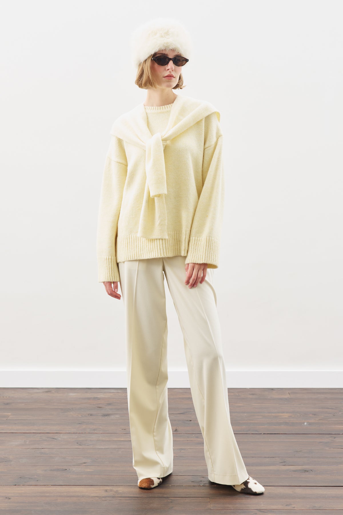 Wide-Collar Knit Scarf Yellow
