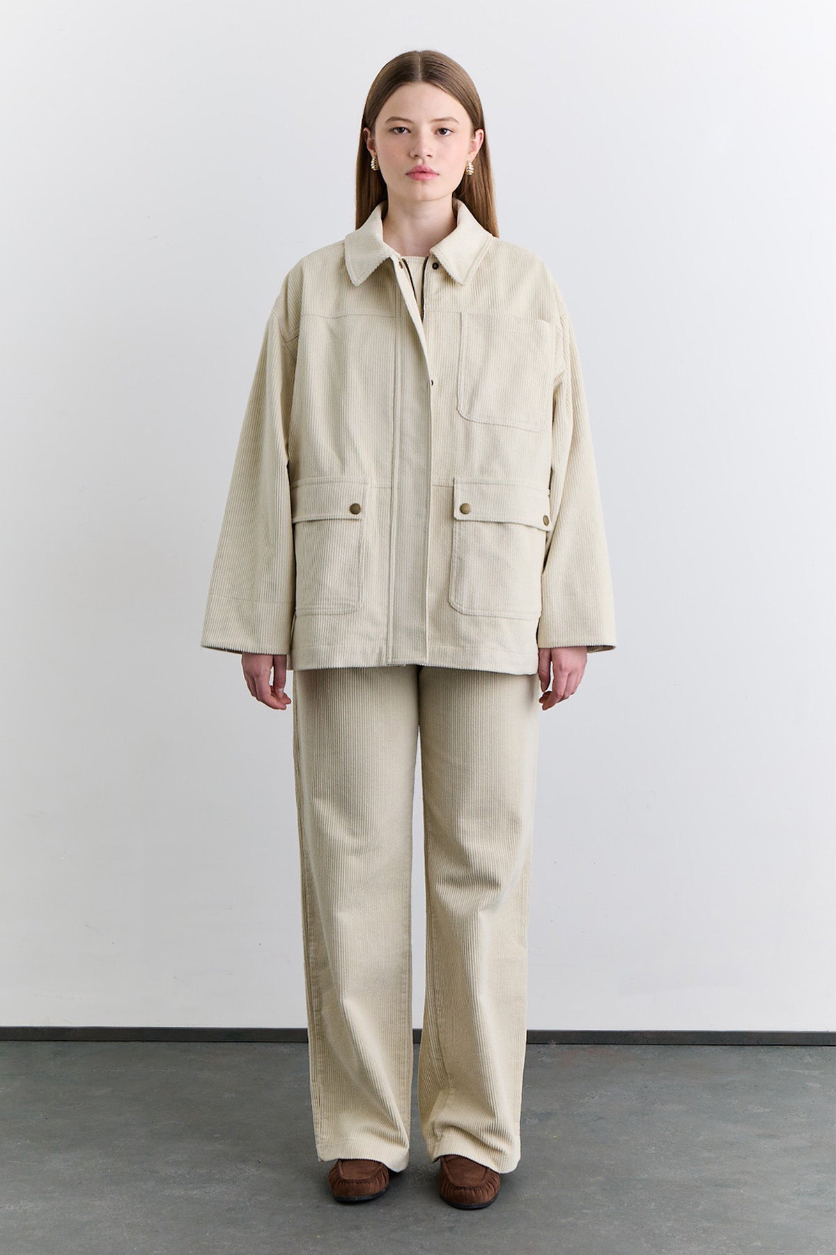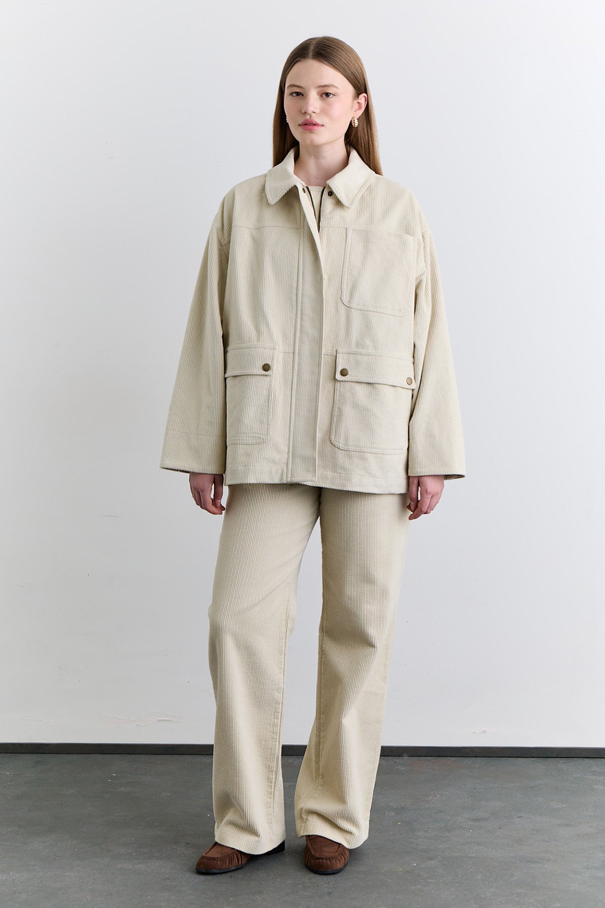 Normal rahat kalıp, gömlek yaka, uzun kol, geniş cepli çıt çıt detaylı, ara boy, fermuar detaylı.