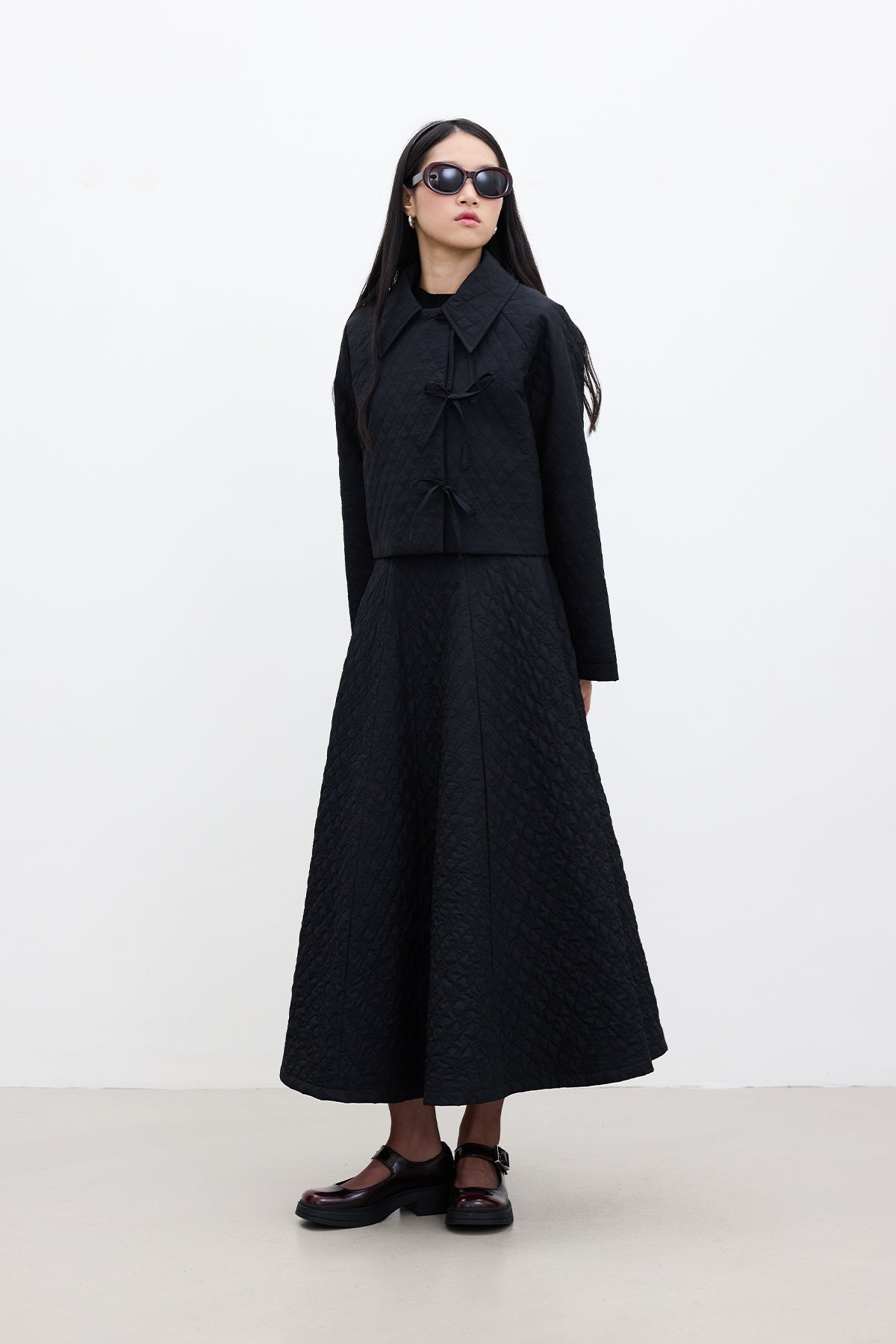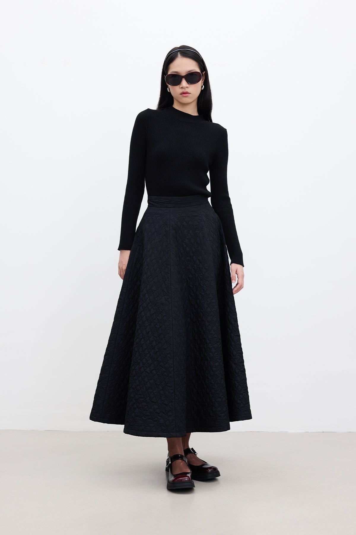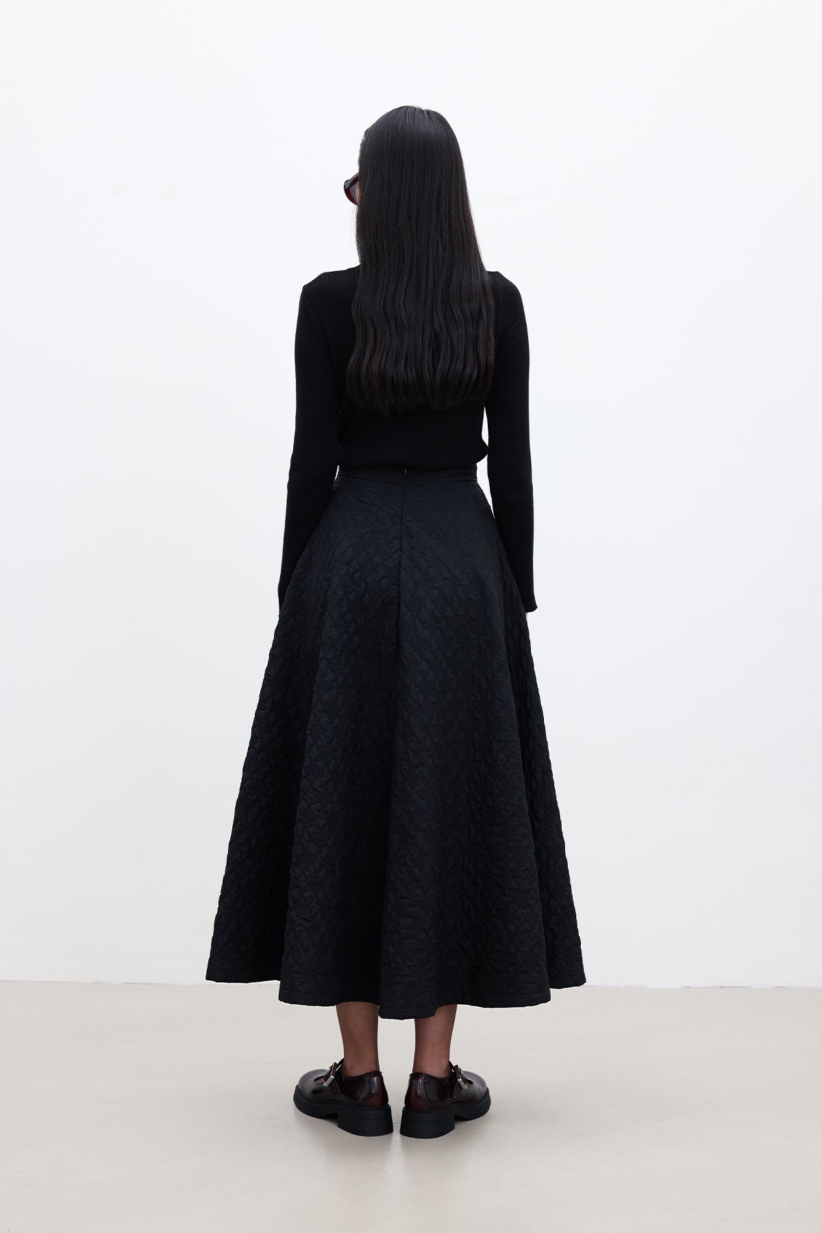 Geniş Kapitone Etek Siyah