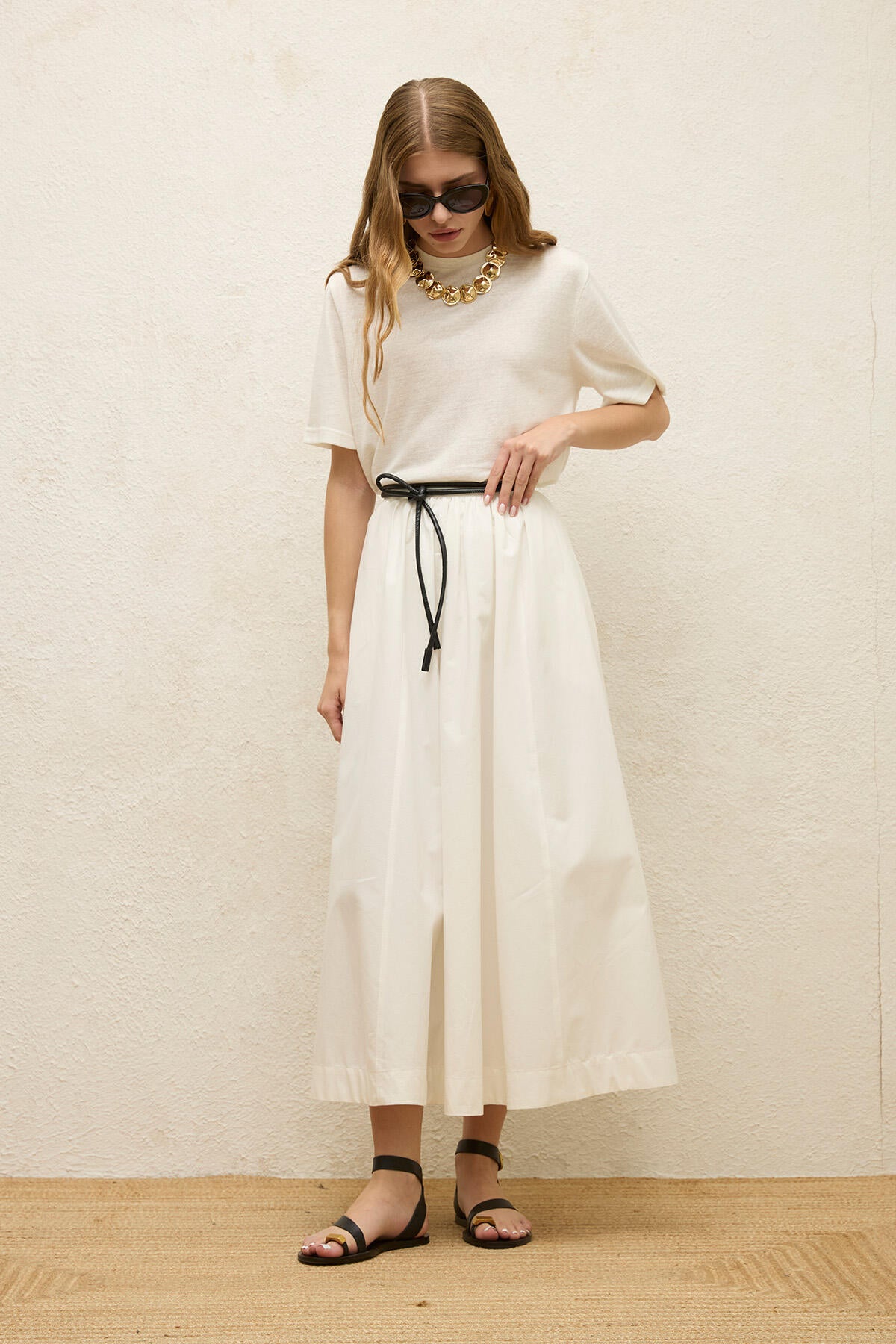 Katy Gabardine Büzgülü Etek Ekru