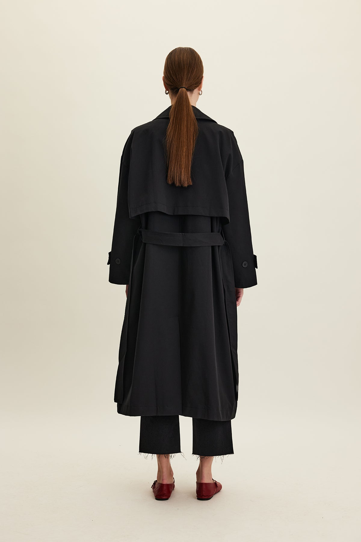 Büyük Boy Kemerli Gabardin Trençkot Siyah