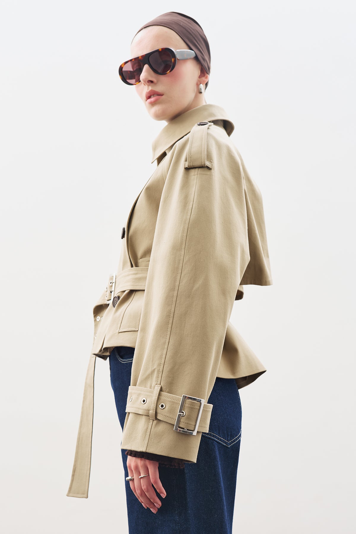 Belted Short Trench Coat Sand