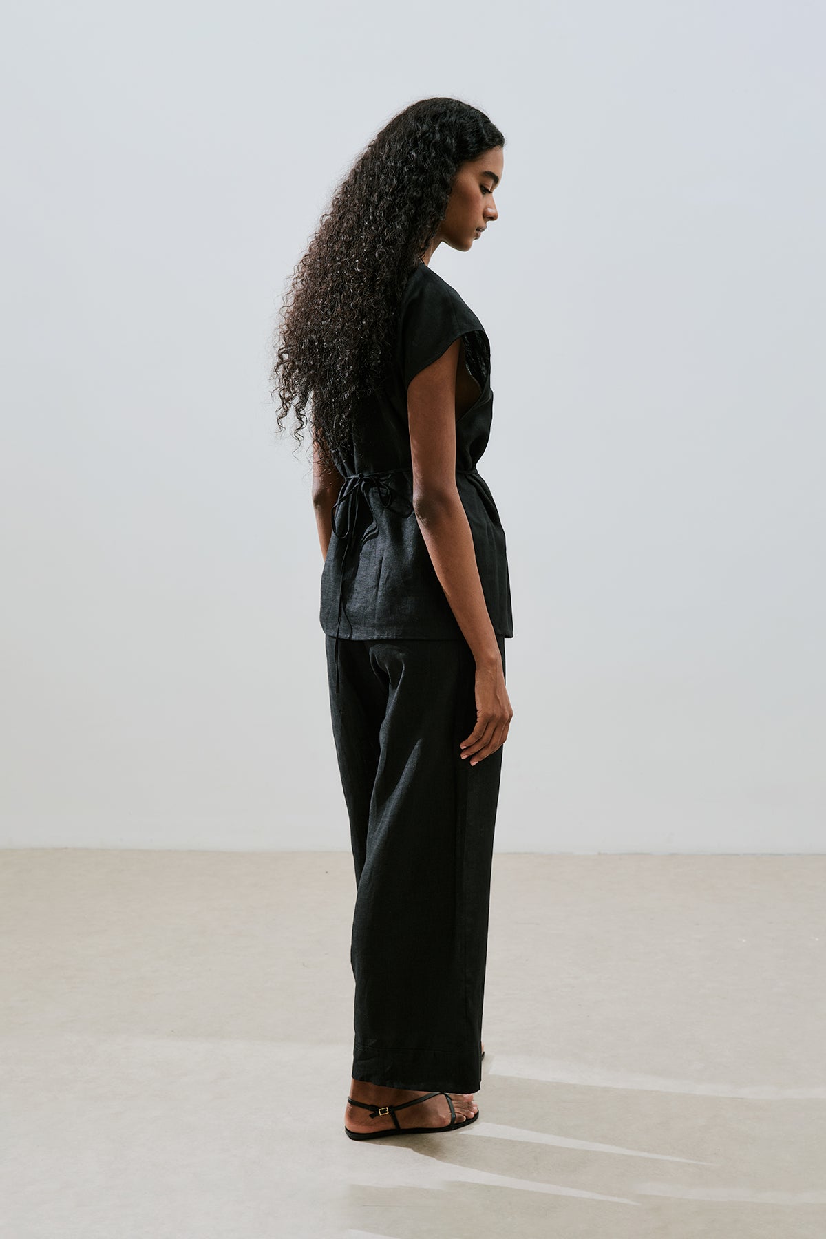 KETEN KOLSUZ BLUZ SİYAH
