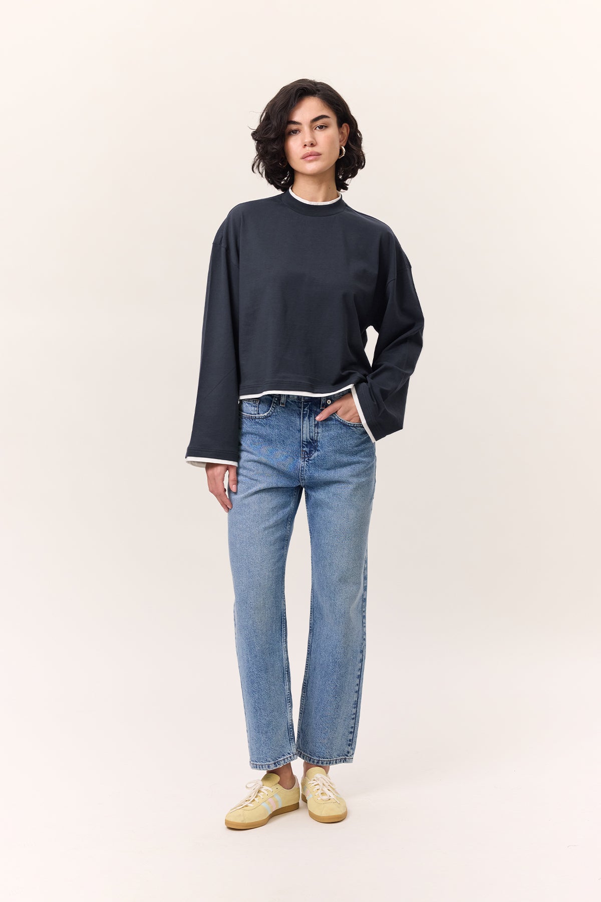 Geniş manşetli uzun kollu